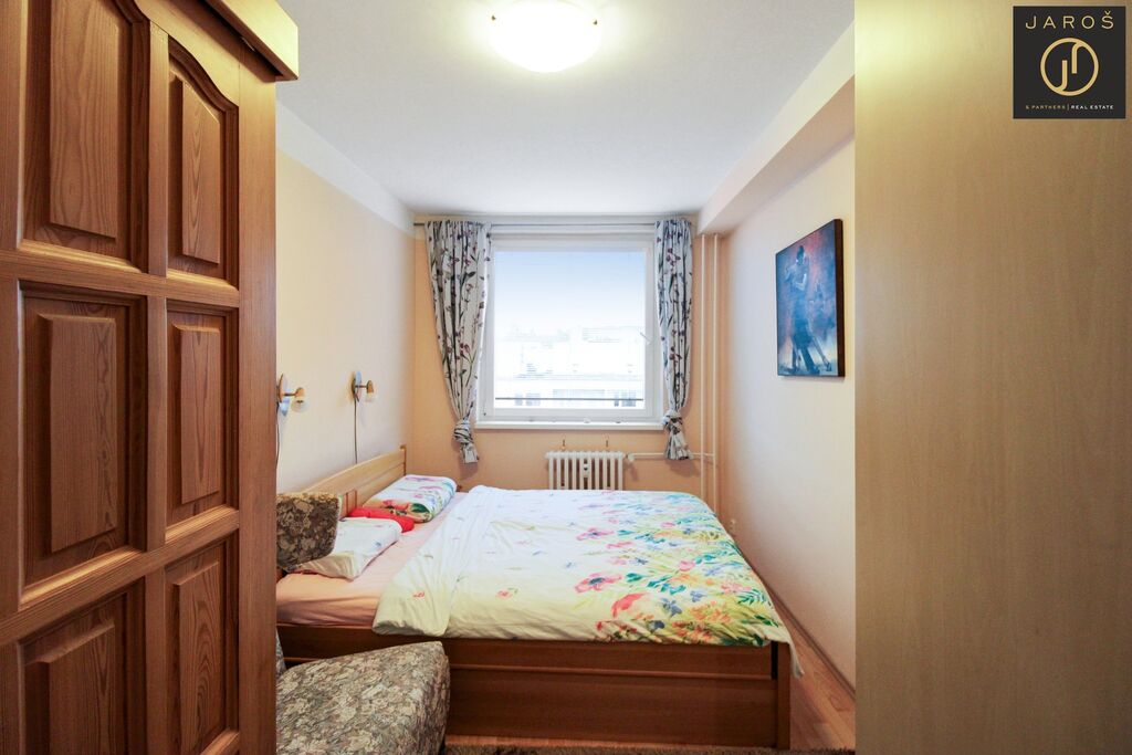 Nabízíme Vám k pronájmu byt 4kk, 75m2 + 6m balkón, situovaný v ulici Pod Lysinách v 7. (posledním) patře bytového domu s výtahem. Byt se skládá z prostorné chodby s vestavěnými skříněmi, tří oddělených ložnic, obývacího pokoje s kuchyňským koutem a vstupem na balkón, koupelny se sprchovým koutem a oddělené toalety. K bytu náleží také zděný sklep a parkovat je možné v přilehlých ulicích.