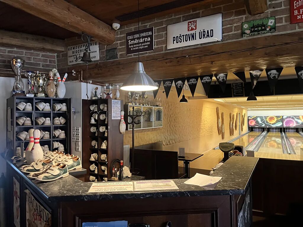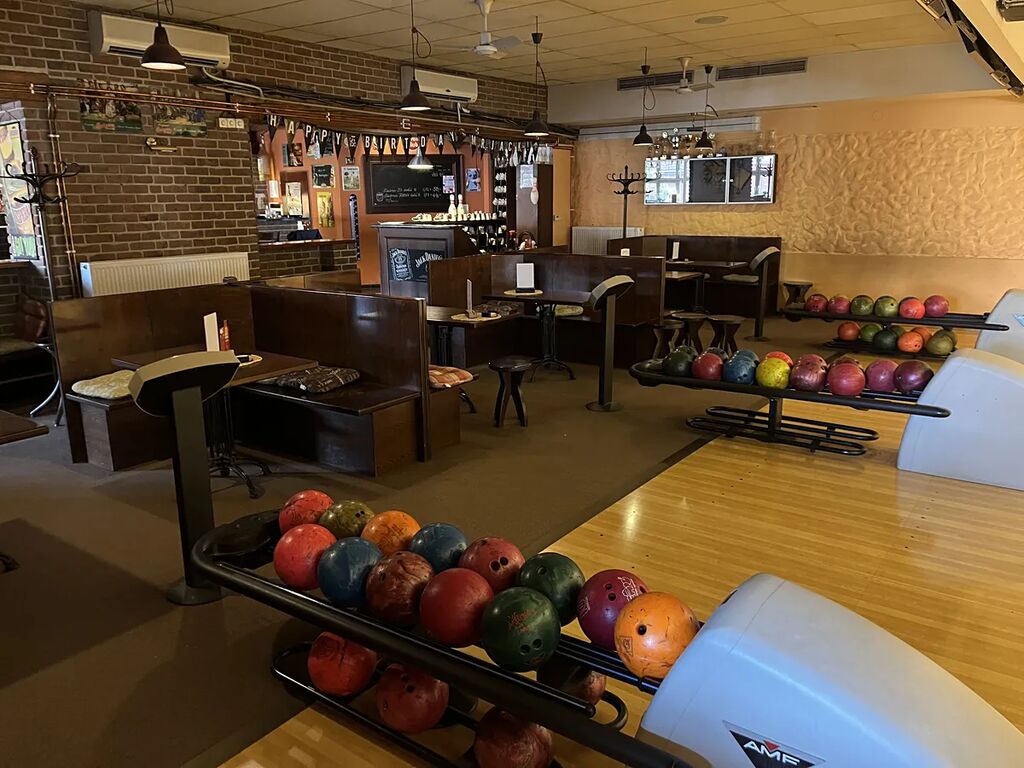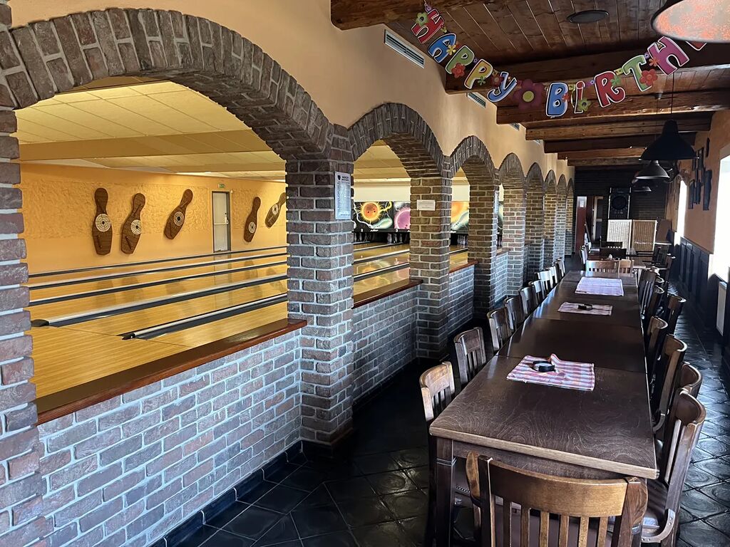 Nabízíme Vám v zastoupení majitelů kompletně zařízený a vybavený podnik celé budovy největšího prostějovského bowlingu americké zn. AMF se 6 dráhami stylově vybaveno sedacími boxy se stolečky s kapacitou pro cca 24-30 lidí, se zázemí pultu bowlera s ovládací technikou a regálem s půjčovnou bot na dráhy bowlingu, stylovým barem s obklady cihlami a barovými židlemi, dalším posezením ve formě stolů se židlemi z masivu, celkově o kapacitě cca 80 míst k sezení, vše vyrobeno na zakázku, umístěno v 1. patře se širokým schodištěm a odpovídajícím sociálním zařízením.