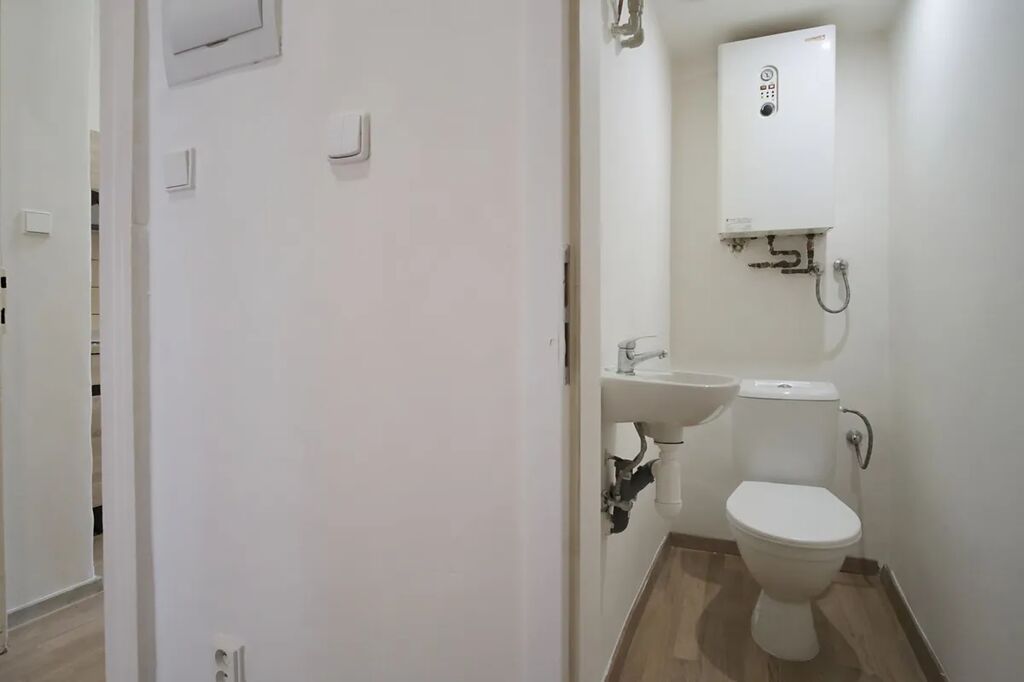 Topení je elektrické, byt má svůj elektrický kotel a bojler na ohřev vody.