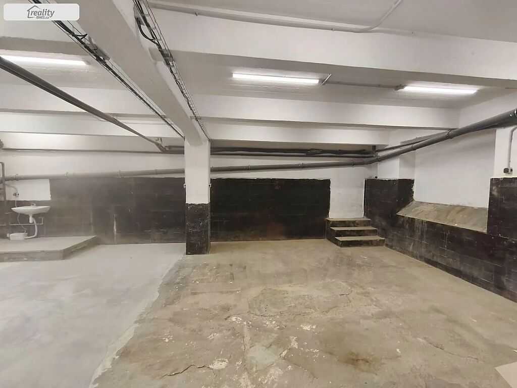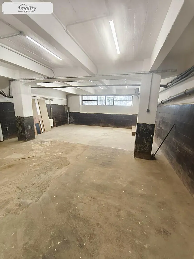 Vchod železnými dveřmi šíře 1,2m výška 2 m hned vedle nákladního výtahu. Vhodné pro hlučnější výrobu. Je možné vysoké zatížení betonové podlahy. V prostoru je k dispozici rozvod napětí 230/400V, osvětlení, zásuvky, voda, odpad.