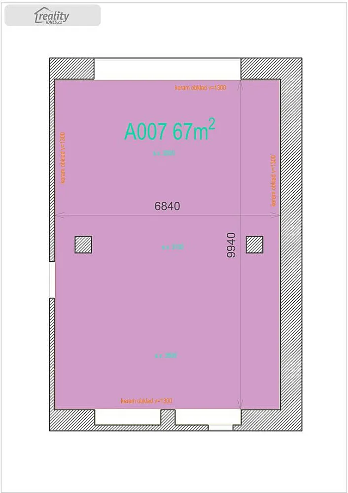 Pronájem prostoru A007 v 1.PP budovy A, vhodný jako dílna, sklad či výroba. Sociální zařízení je v 1.NP objektu. Celkově jde o prostor o rozměrech cca 7m x 10m o podlahové ploše 67m2 s výškou stropu 3,5m. Prostor má okna.