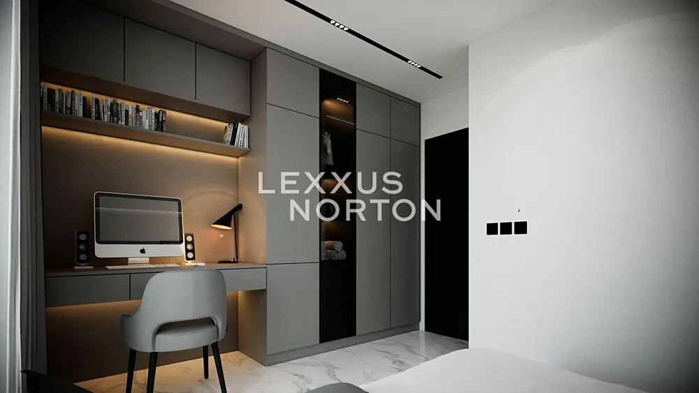 Světlý obývací pokoj s kuchyňským koutem je propojen s balkonem, který vytváří příjemné venkovní zázemí pro relaxaci i posezení. Hlavní ložnice i druhý pokoj nabízejí dostatek prostoru pro vestavěné skříně a praktické úložné systémy. Koupelna s vanou a samostatná toaleta jsou řešeny v moderním designu s důrazem na funkčnost a estetiku.