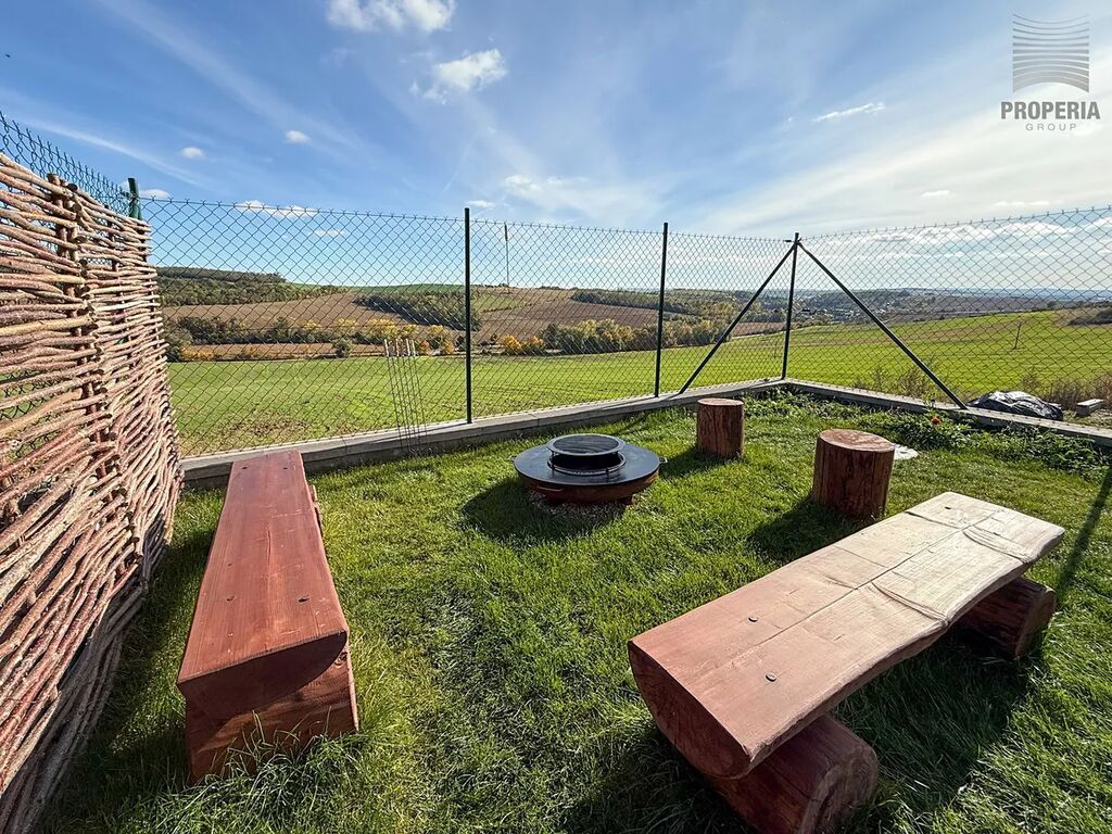 Součástí je venkovní posezení s ohništěm a terasa přístupná přímo z obývacího pokoje. Výhled z domu i z terasy je jedinečný a patří mezi hlavní přednosti této nemovitosti.