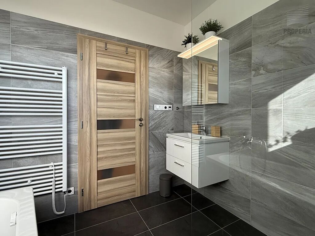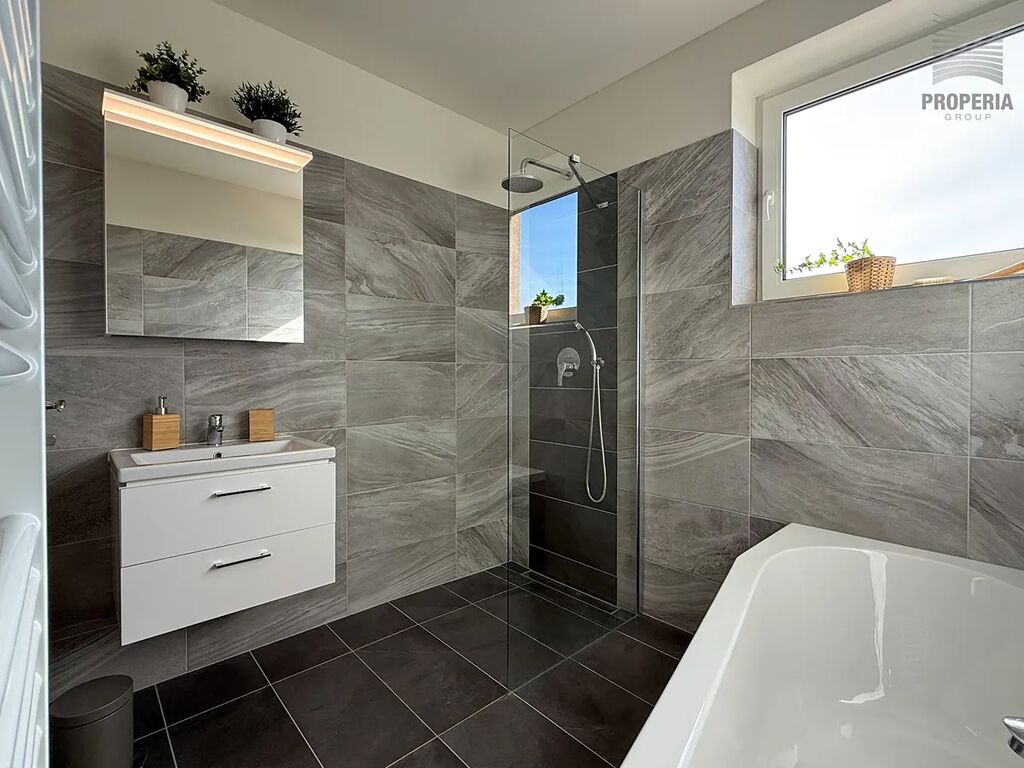 •	Koupelna s vanou a sprchovým koutem