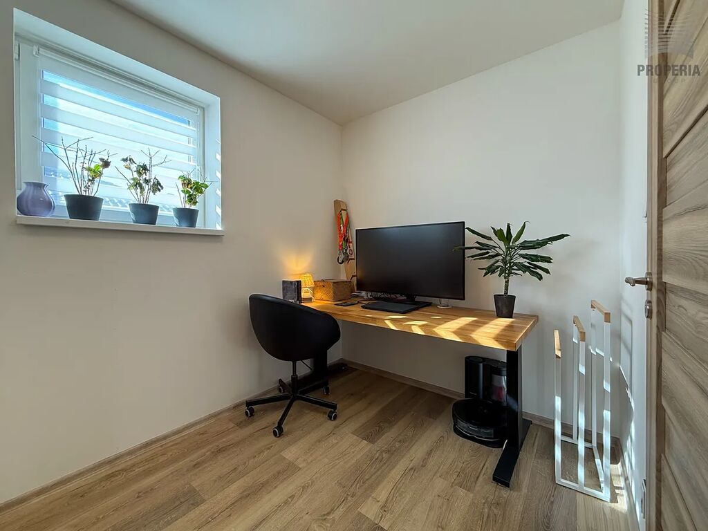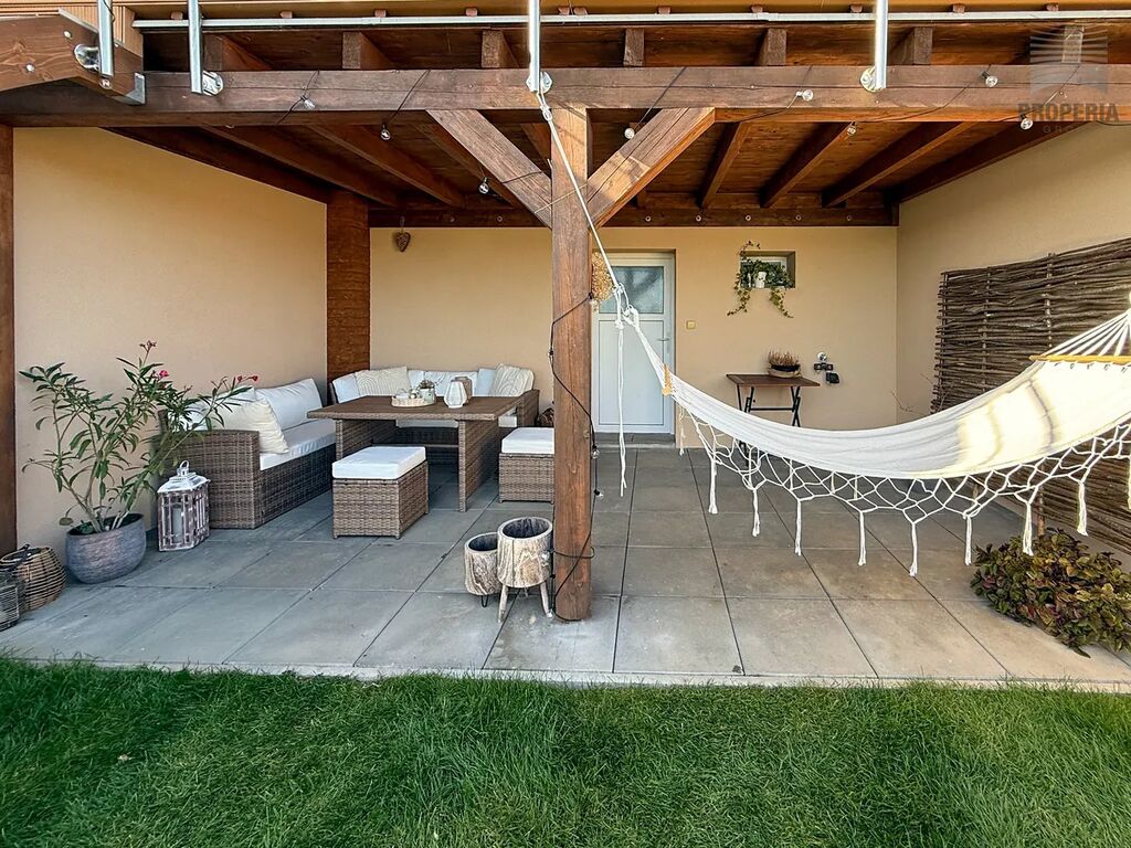 Dům o dispozici 5 + kk a užitné ploše cca 135 m² se nachází na pozemku o výměře 251 m². Součástí je prostorný sklep, dvě koupelny, terasa se zahradou o velikosti 116 m² a dvě vlastní parkovací stání přímo před domem.