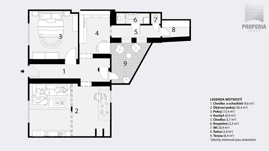 •	Užitná plocha cca 127 m², včetně terasy (6 m²)