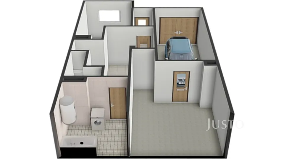 Přízemí: garáž, dílna, prádelna, kotelna, komora, 67 m²