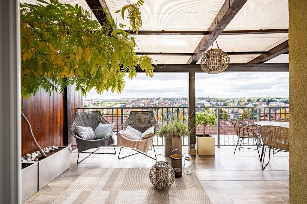 Byt je velmi příjemný, světlý a má skvělou dispozici. Z prostorné předsíně je vstup do hlavní části obytného pokoje vybaveného pohodlnou sedací soupravou, TV a konferenčním stolkem. Obývací prostor je spojený, současně šikovně oddělený od kuchyně a jídelního prostoru. Kuchyň je kompletně zařízena spotřebiči (myčka, trouba, mikrovlnná trouba, lednice a mrazák). Jídelní stůl a židle. Z této části se vchází na krásnou zastřešenou terasu, kde je možné nejen posedět a kochat se krásným výhledem na jižní stranu, ale v létě je možné si také užívat wellness ve vířivce či příjemný večer s krásným výhledem. V druhé části bytu jsou dvě ložnice, které slouží momentálně jako ložnice manželská (vstup na balkón) a dětský pokoj. V koupelně vana, pračka. Takto jsou i zařízeny a byt se pronajímá včetně zařízení uvedené na fotkách.
