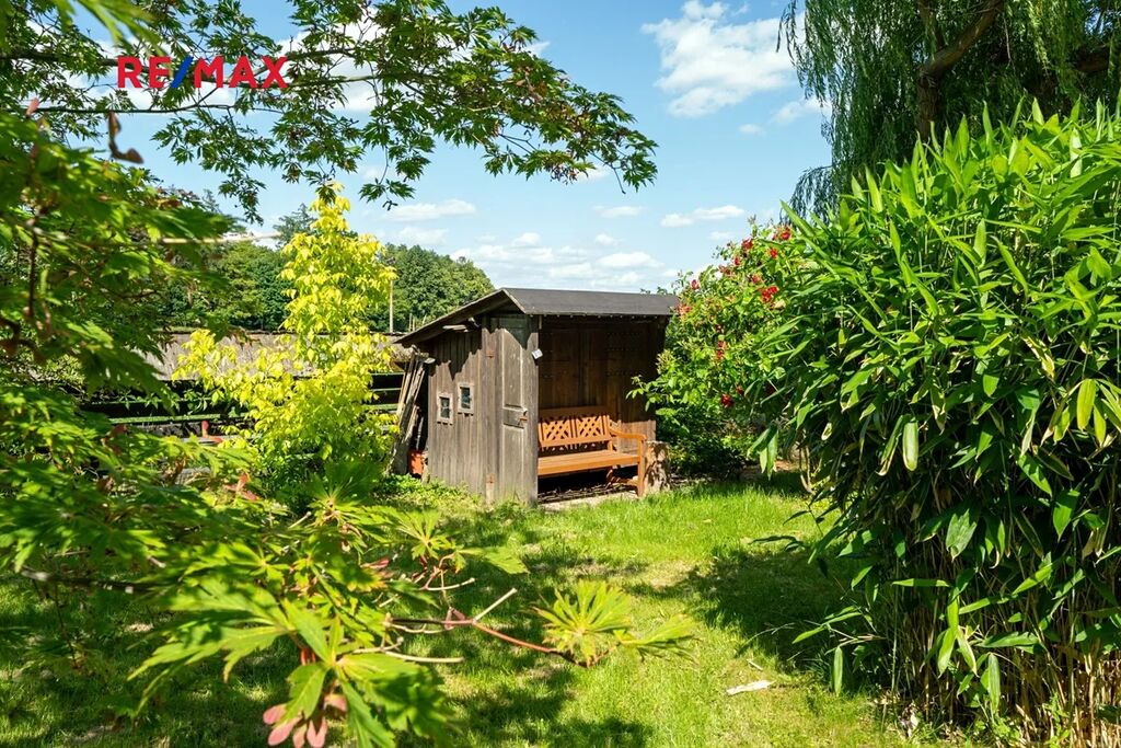 Součástí nemovitosti je členitá zahrada s vzrostlými dřevinami, ovocnými stromy a okrasnými záhony. V zahradě se nachází rybníček, bazén, posezení s výhledem do zeleně i intimní zákoutí vhodná pro klid a relaxaci. Prostor nabízí dostatek místa pro volnočasové aktivity i zahradničení.