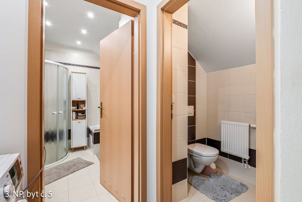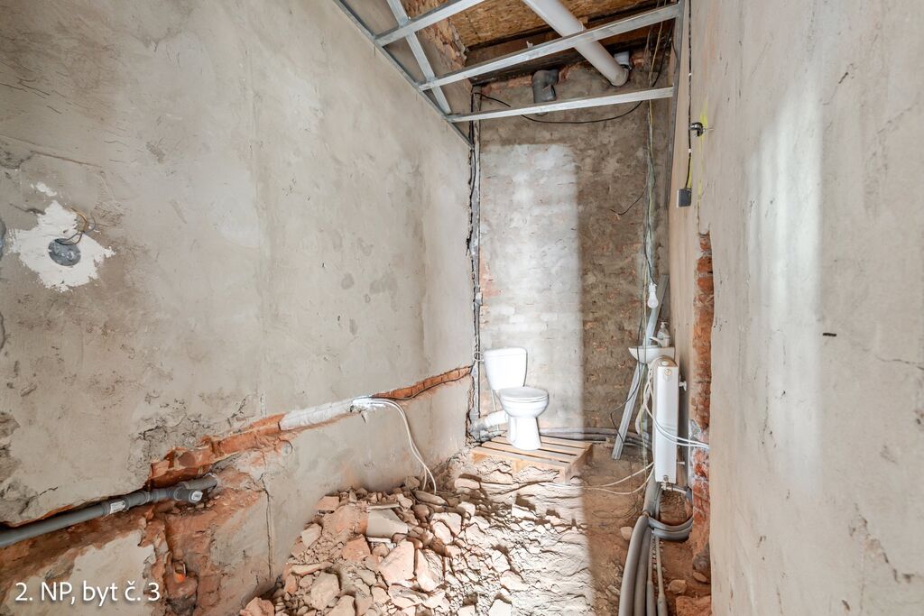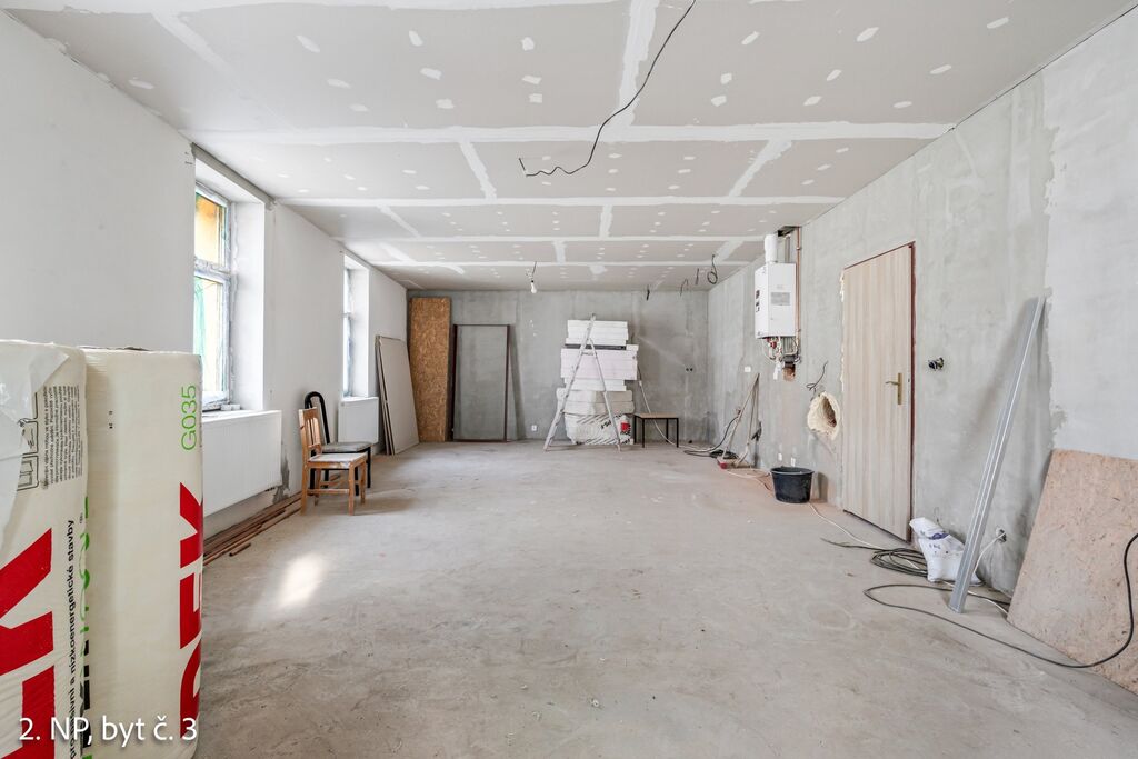 Ve 2. patře je byt zcela dokončený, vybavený a aktuálně pronajatý – ideální pro okamžitý výnos z nájmu.