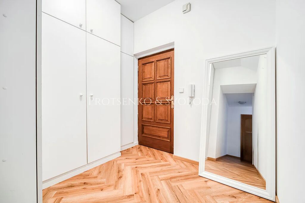 Společnost Protsenko & Svoboda v zastoupení majitele nabízí k pronájmu jedinečný mezonetový byt o celkové výměře 81,6 m², který se nachází v samém srdci Prahy – na Ovocném trhu, jen pár kroků od Stavovského divadla, metra Můstek a Náměstí Republiky.