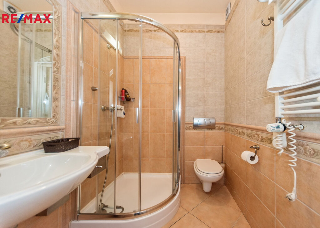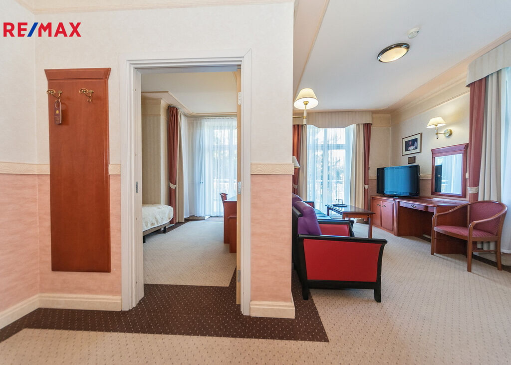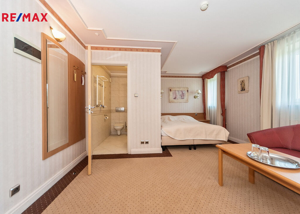 Čtyřpodlažní hotelová budova o rozloze cca 1 373,29 m² má 19 apartmánů a 54 lůžek. Standard je nejvyšší třídy: mramor, onyx, travertin, exotické dřevo, sklo, křišťál. Exkluzivní SPA: sauny, jacuzzi, masážní kabiny, koupelové pokoje. Restaurace s profesionálním kuchyňským zázemím. Druhá restaurace ve stavu „hrubé stavby“, k vlastní aranžaci. Konferenčně-bálový sál, prosklená veranda-kavárna, bar, elegantní lobby. Terasa s italskou zahradou a zralou vegetací. 30 parkovacích míst s možností realizace podzemního parkoviště. Na pozemku se nachází také rodinný dům o rozloze cca 239,17 m² s kompletním technickým zázemím a krby.