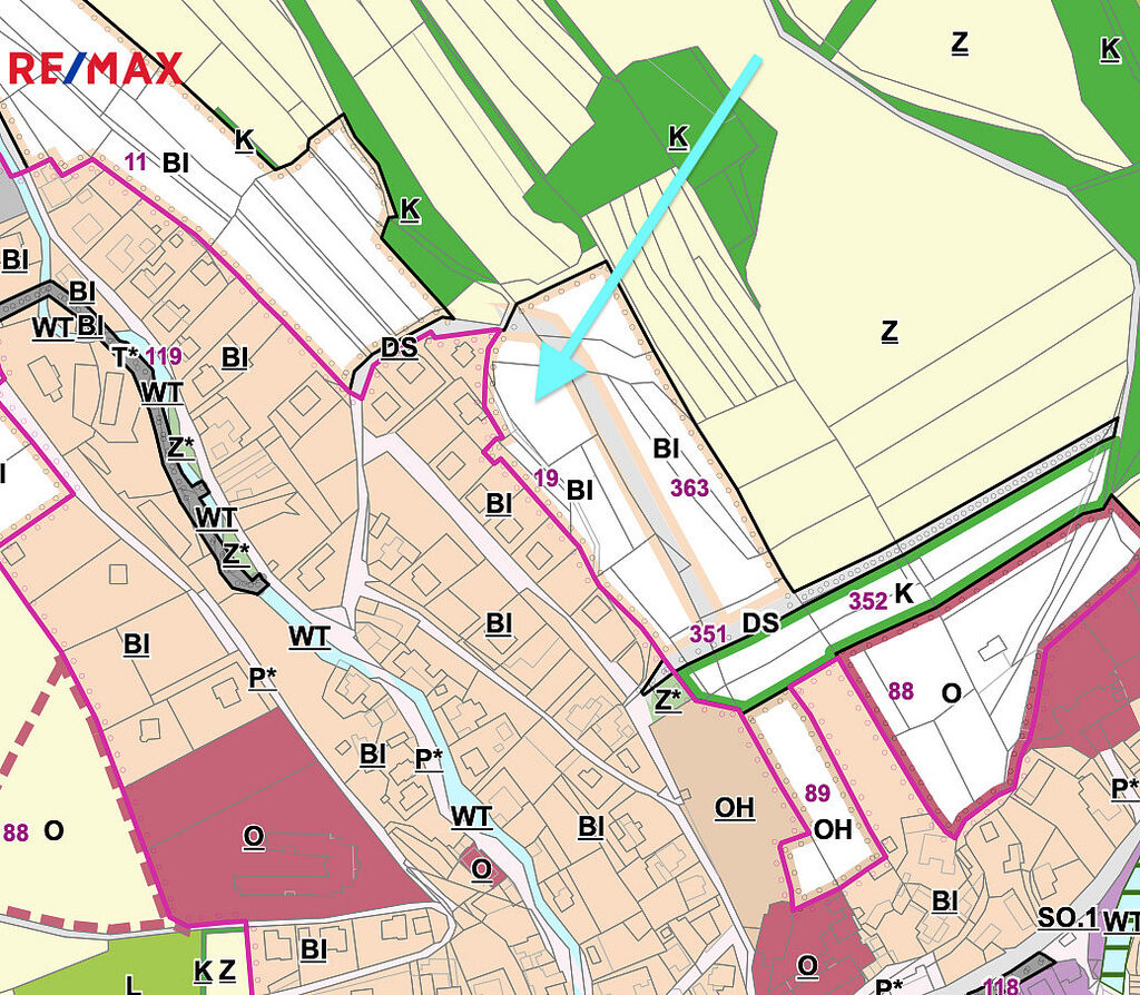 Pozemek je územním plánem obce určen k individuálnímu bydlení. Je svažitý-mírně svažitý, v současné době je celý zarostlý náletovým dřívím. Vyšší poloha pozemku zaručuje nádherné výhledy na centrum obce a vzdálené okolí.