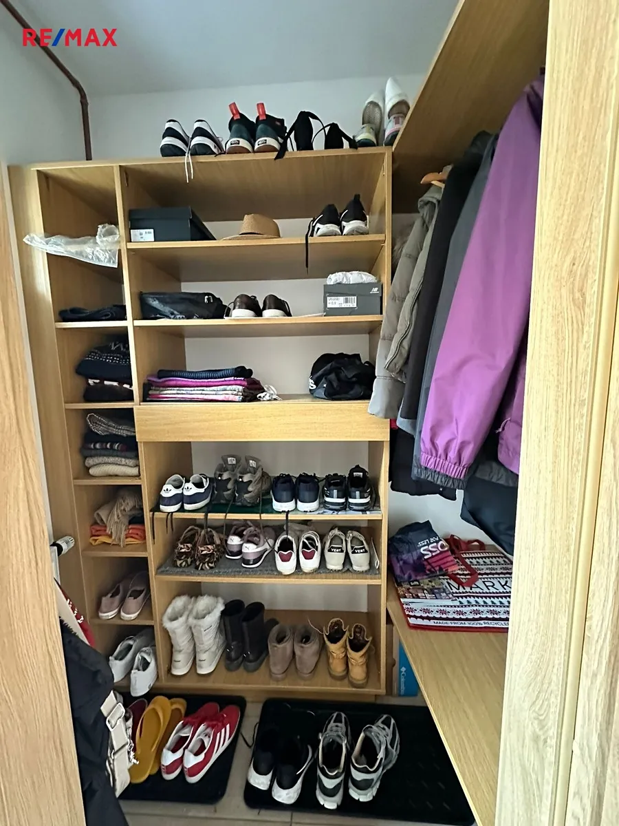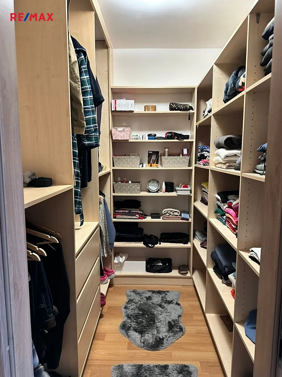 V přízemí domu se nachází prostorný obývací pokoj s kuchyňským koutem a moderní kuchyňskou linkou s vestavěnými spotřebiči, dále toaleta s umyvadlem, šatna, prádelna a garáž pro jeden osobní automobil. V patře jsou k dispozici čtyři pokoje, šatna a koupelna s vanou a toaletou. Šatna v přízemí a šatna v patře jsou vybaveny vestavěnými skříněmi, stejně jako dva pokoje v patře. Jeden z pokojů v patře lze využívat také jako pracovnu, je zde k dispozici knihovna. V obývacím pokoji je rozkládací sedací souprava a nábytková obývací stěna. Majitel domu neuvažuje o demontáži stávajícího vestavěného nábytku na míru.