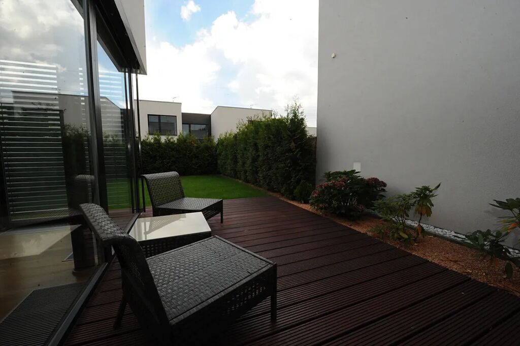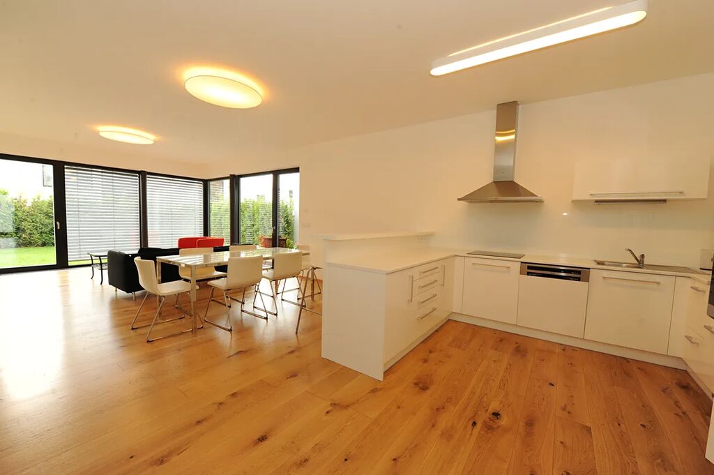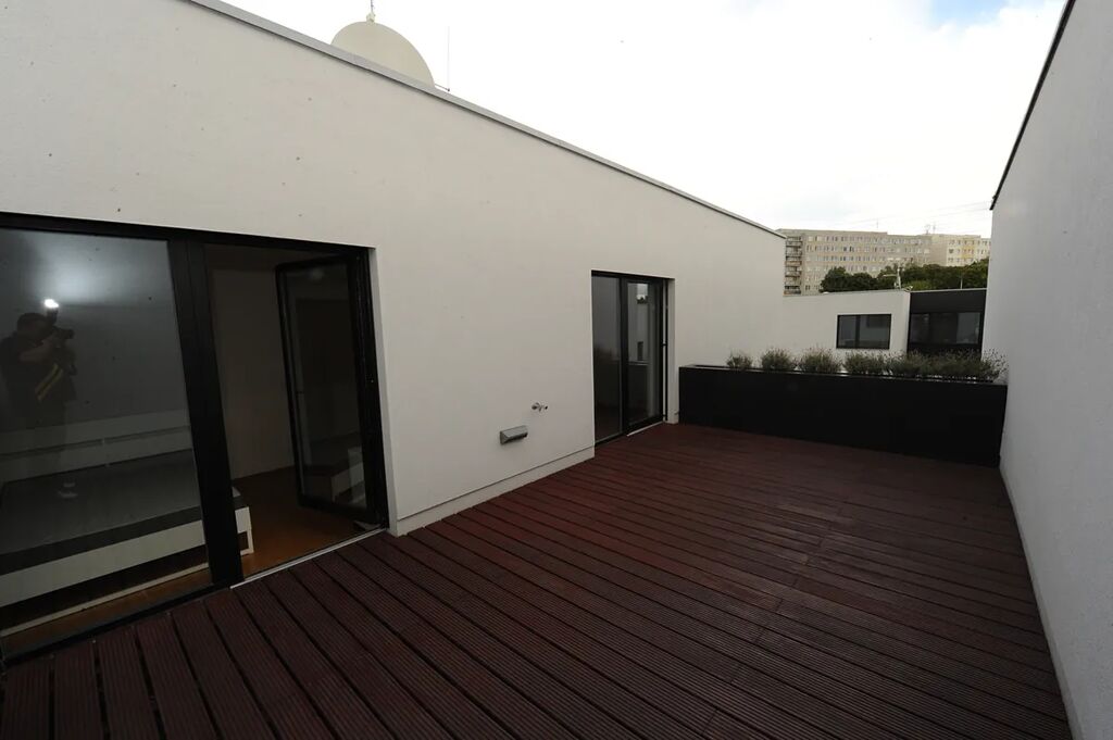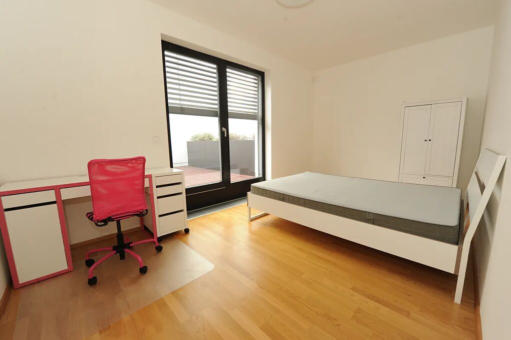 V přímém zastoupení majitele nabízíme pronájem novostavby řadového rodinného domu o velikosti 4+kk se zahradou v klidné lokalitě v přímém sousedství Kunratického lesa. Dům sestává ze 2.podlaží, v přízemí se nachází prostorný a slunný obývací pokoj s kuchyňským koutem s plně vybavenou kuchyňskou linkou, ze kterého se vychází přímo do zahrady a na terasu, dále pak garáž pro jeden automobil, předsíň s vestavěnou skříní a WC, v 1.podlaží jsou 3 samostatné neprůchozí ložnice, přičemž z jedné z nich se vychází na terasu, koupelna s WC a chodba. Dům je pronajímán nezařízený nábytkem, pouze kuchyňskou linkou a vestavěným nábytkem. V okolí se nachází školky, školy, obchody, banky, dětská hřiště, sportoviště. Výborná dostupnost do centra města, stanice metra Chodov cca 10 minut chůze, zastávka BUS cca 2 minuty chůze. Pro více informací kontaktujte RK.