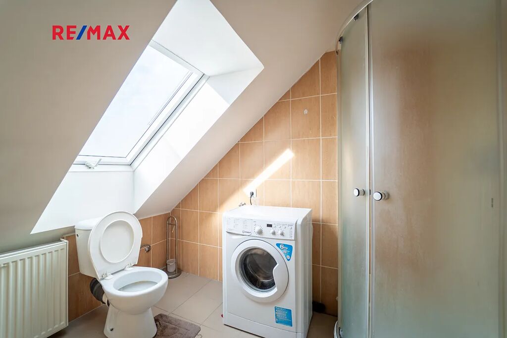 Dům je částečně podsklepený s komorou na potraviny, technickou místností s pračkou, sušičkou a bojlerem zn. DRAŽICE, 2 x pokoj a jedním pokojem pro hosty se samostatným vchodem z nádvoří. Obývací pokoj s oknem do ulice je součástí kuchyně s novou kuchyňskou linkou se spotřebiči, vše součástí domu a ceny. Spotřebiče: americká lednice zn. BEKO, horkovzdušná trouba zn. AEG, mikrovlnná trouba zn. Concept, sklokeramická deska zn. AEG, digestoř zn. Concept. Koupelna s rohovou vanou a sprchovým koutem, WC je samostatné s malým umyvadlem. Podlahy domu jsou plovoucí a kremnická dlažba s podlahovým topením v koupelně a v ostatních místnosti jsou osazeny radiátory.