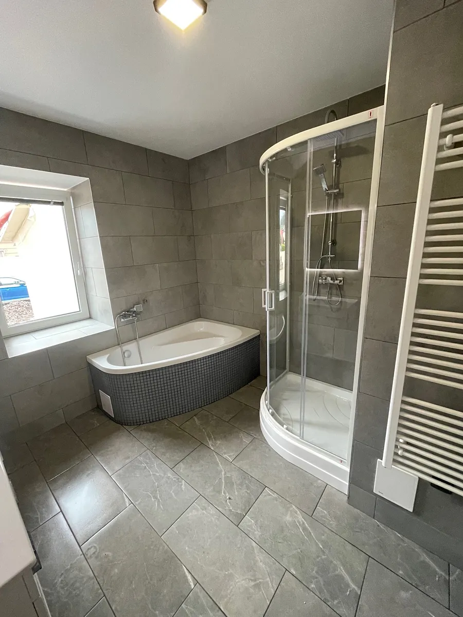 ohřev vody zajišťuje tepelné čerpadlo. Na pozemku je k dispozici pět