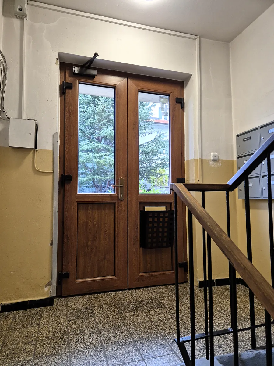 Byt je ve 2.patře (2) s krásným výhledem do tichého vnitrobloku, kde se nachází zahrada, kterou lze užívat.
