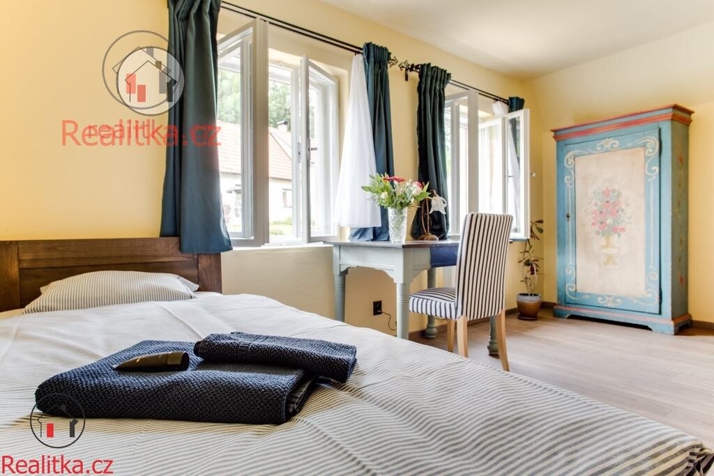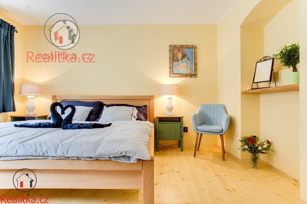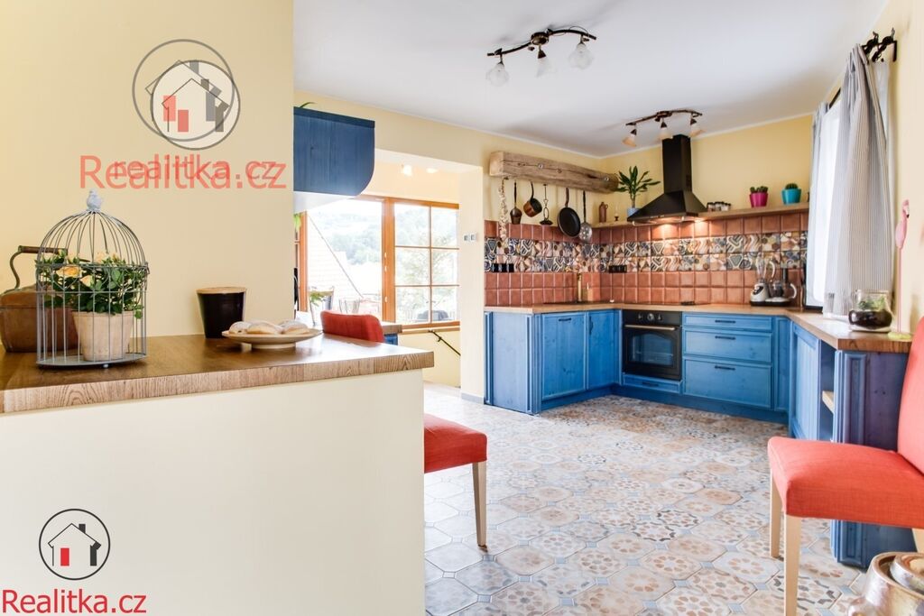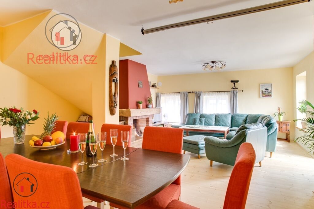 Pronajmu zařízený rodinný dům 5+2 po rekonstrukci. Dům má terasu cca 25m2 s krásným výhledem na Křížovou horu. Dům disponuje jednou garáží se sekčními vraty na dálkové ovládání. Ve vyvýšeném přízemí domu se nachází prostorná plně vybavená kuchyně (americká lednice, mrazák, trouba, sporák atd. včetně veškerého nádobí). Dále je zde velká místnost jídelna s obývacím pokojem, jedna ložnice, koupelna se sprchovým koutem a samostatné wc. Vstup na terasu je z kuchyně i z jídelny a obývacího pokoje. V obývacím pokoji je otevřený krb. V prvním patře se nachází 3 ložnice, koupelna se sprchovým koutem a vanou a samostatné wc. V podkroví je jedna ložnice.
