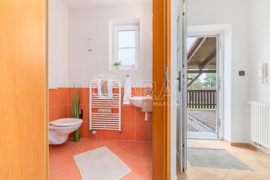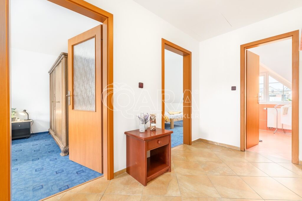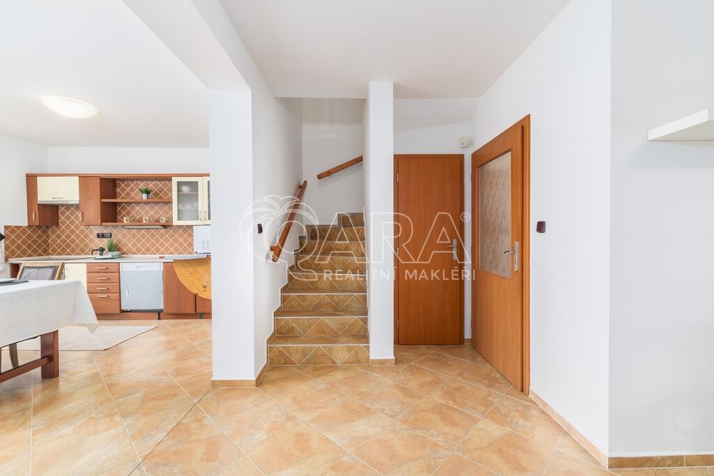Dům jako takový poskytuje užitnou plochu o necelých 120 m² a je součástí řadového rodinného bloku. Nabízí pět obytných pokojů, dvě koupelny, prostorný obývací pokoj s kuchyní a jídelnou, technické komory a spíž. Vzdušný obývací pokoj doplňuje přímý vstup na zastřešenou terasu o výměře 14,5 m², ideální pro posezení a grilování. Z kuchyně je vstup přímo na zahradu náležící k domu o příjemné výměře 370 m², která poskytuje ideální klidné prostředí pro relaxaci nebo místo, kde se mohou děti bezpečně vydovádět. K praktičnosti domu přispívá také vlastní přístřešek na auto a zděný zahradní domek či skladovací místnost vhodná pro uložení sportovního vybavení nebo zahradní techniky. V případě potřeby dalších parkovacích míst je možné po domluvě dokoupit volná stání před domem.