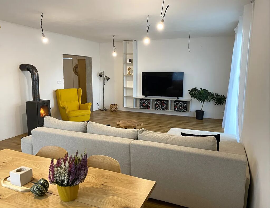 S ohledem na nedávnou kompletní vnitřní rekonstrukci v roce 2025, jsou zde minimální investice do úprav. V přízemí domu najdete vstupní halu, obývací pokoj s kuchyňským koutem, též vstup na terasu a koupelnu s WC. V patře Vás čekají tři pokoje, balkon a koupelna připravená na dokončení, veškerý materiál pro její dodělání je k dispozici. Celý dům je podsklepen a v tomto suterénu se nachází celkem čtyři místnosti, jedna je vytápěná a druhá slouží jako technická místnost, kde je umístěné tepelné čerpadlo se zásobníkem na vodu. K domu náleží zahrada o ploše 562 m², můžete se zde věnovat zahradnickým aktivitám nebo jen příjemně relaxovat. Pro vaše pohodlí je k dispozici také garáž a bazén.