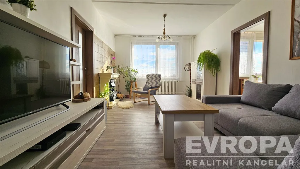Tento světlý a prostorný byt 3+k1 o celkové užitné ploše 76 m² se nachází ve 13. patře čtrnáctipatrového panelového domu s výtahy. Dispozičně byt disponuje dvěma ložnicemi, obývacím pokojem spojeným s kuchyní, koupelnou a samostatným WC. K bytu náleží také sklep o velikosti 2 m² a lodžie o ploše 3 m², což umožňuje pohodlné posezení s krásným výhledem na město.