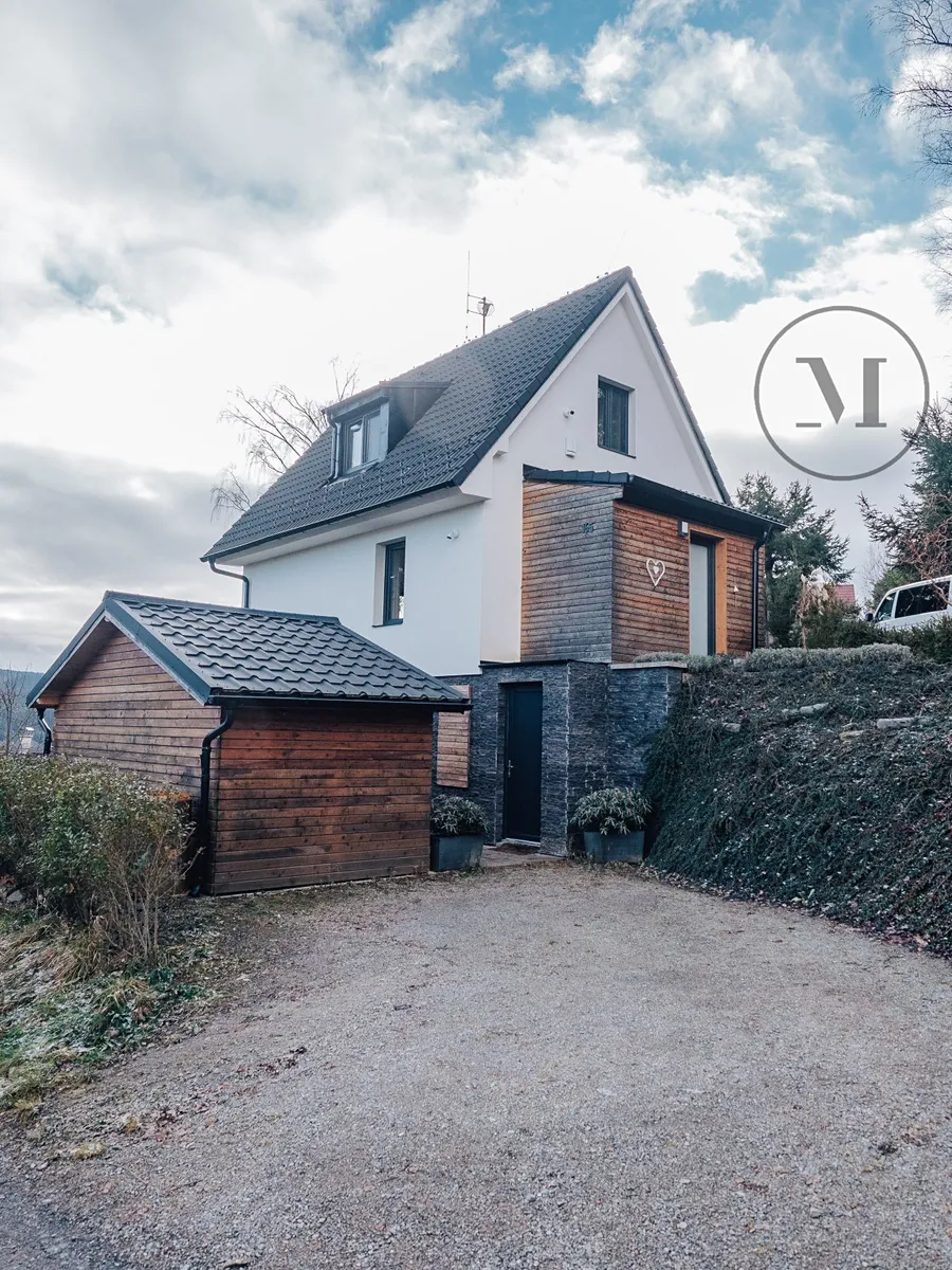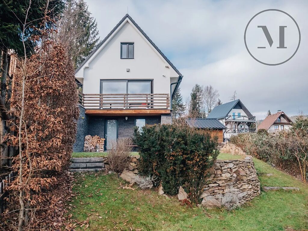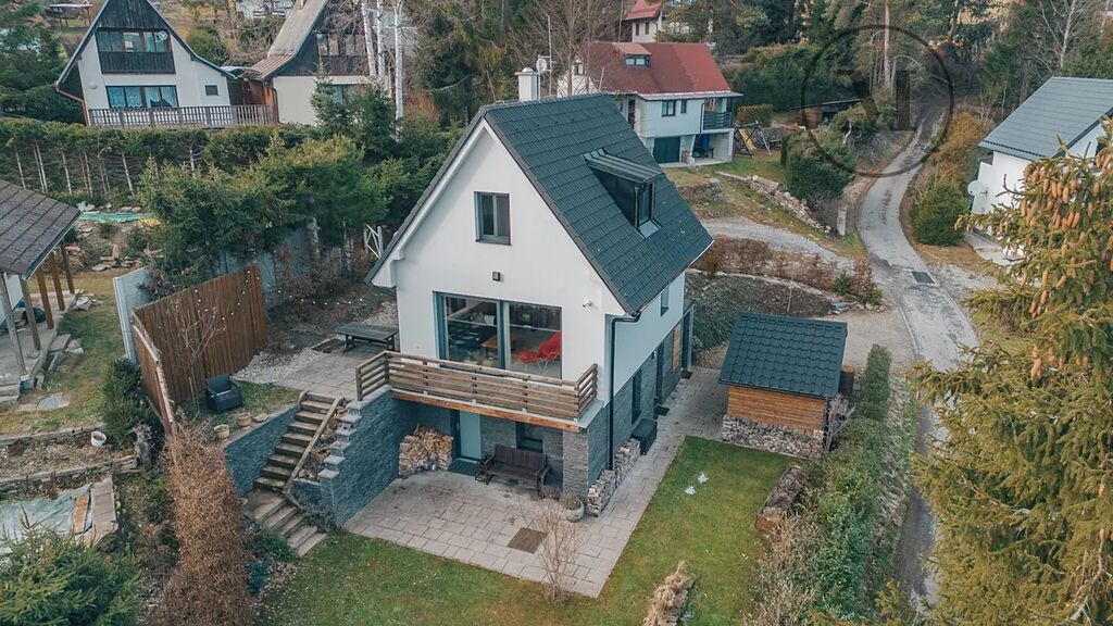 Ta pohoda, kterou zažijete v obýváku je neopakovatelná. Obývák disponuje velikými prosklenými posuvnými dveřmi (bezprahový HS portál) s úchvatným výhledem na lipenské jezero a v zádech máte krbová kamna. U vstupu je prostorná předsíň, vedle předsíně samostatná toaleta. Ve 2. patře jsou 2 samostatné ložnice, koupelna se sprchovým koutem a toaletou.