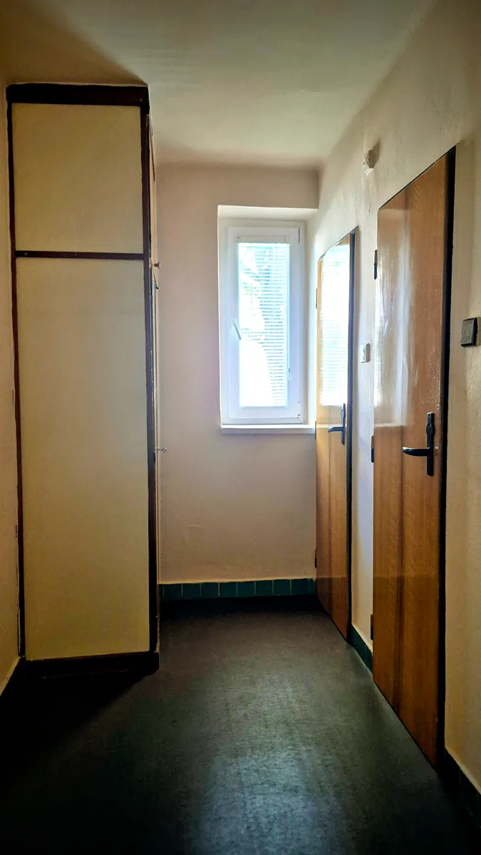 Dispozici tvoří vstupní chodba s koupelnou a samostatným WC, kuchyň s kuch. linkou a plyn sporákem, 2 pokoje. Dále jsou k dispozici dva sklepní prostory, které nabízí další úložné místo. Budova se nachází v dobře dostupné lokalitě s výbornými dopravními možnostmi - vlak, autobus, MHD jsou jen kousek od domu.