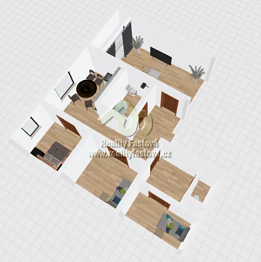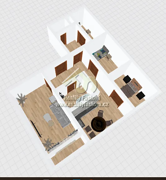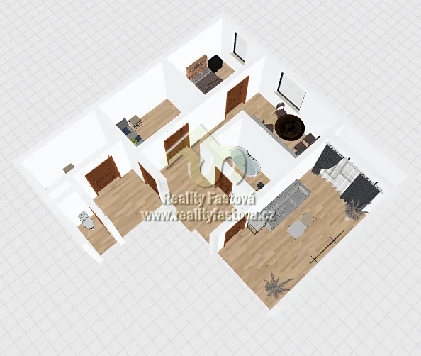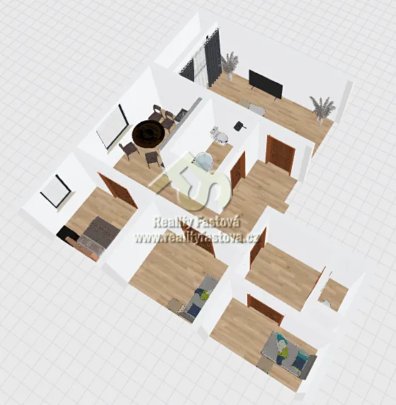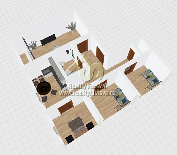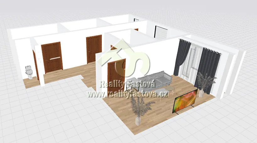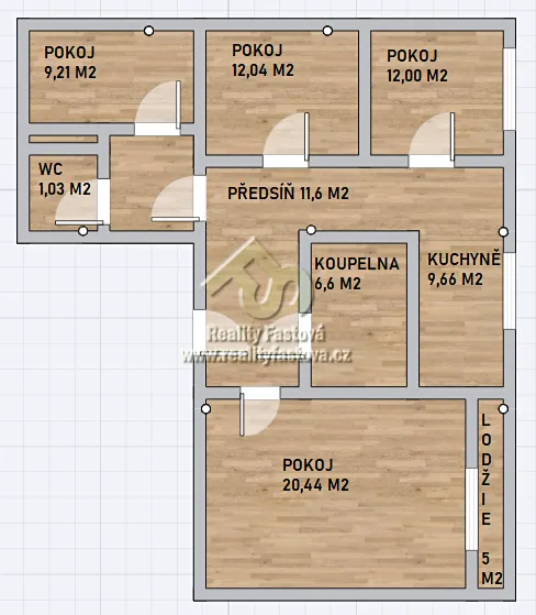 Byt má všechny pokoje samostatné, neprůchozí. Z velkého obývacího pokoje je výstup na lodžii.