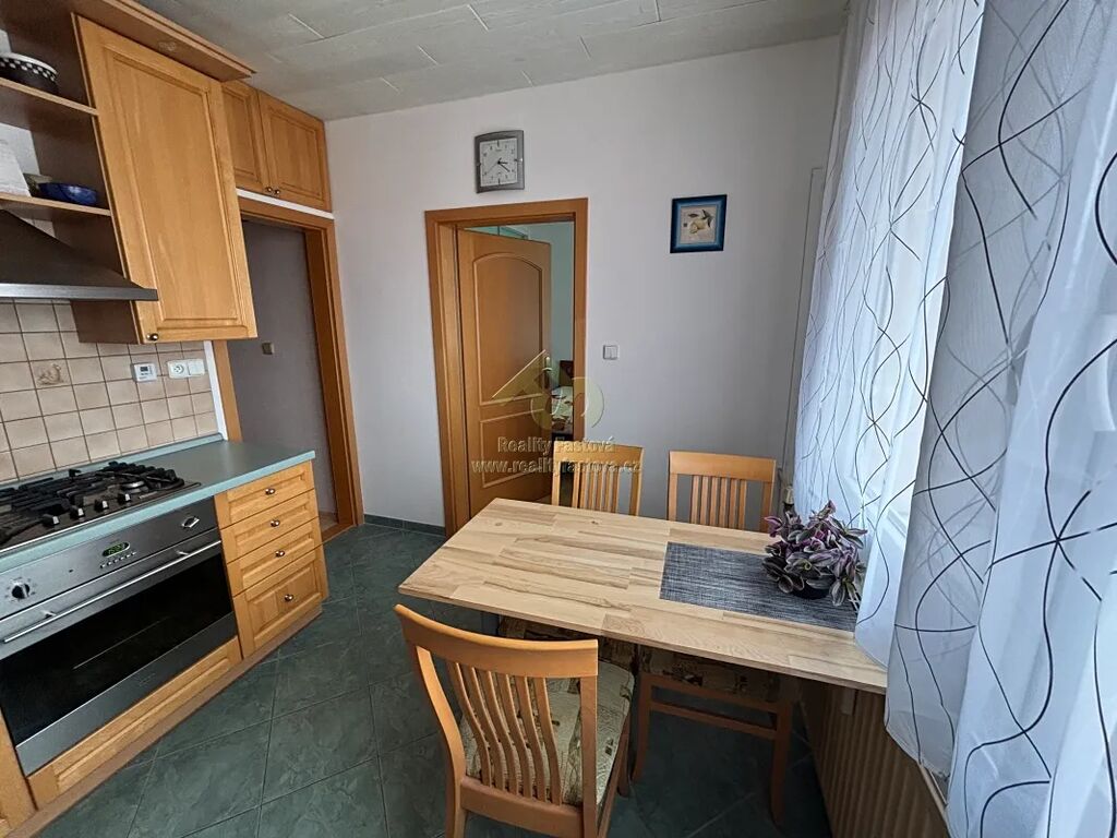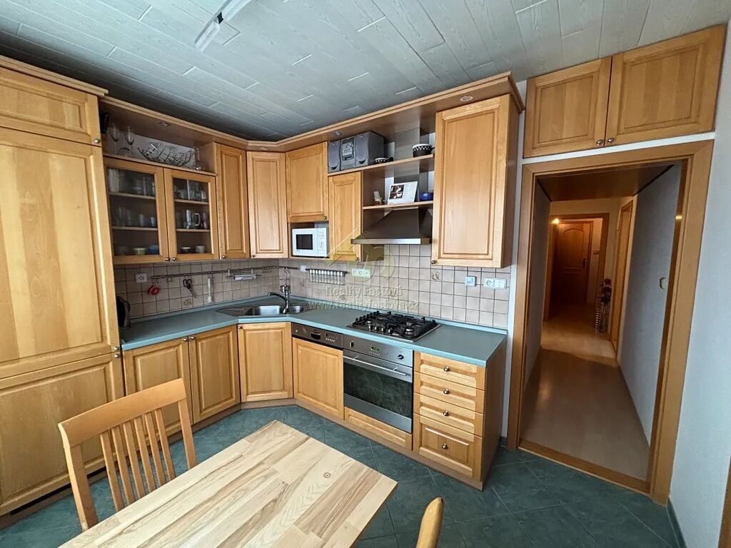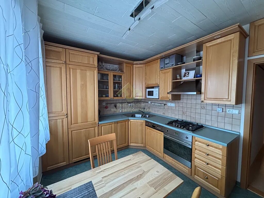 V kuchyni je kuch.linka na míru do tvaru L, vč.dřezu, plyn.sporáku s el.troubou, digestoří a myčkou.