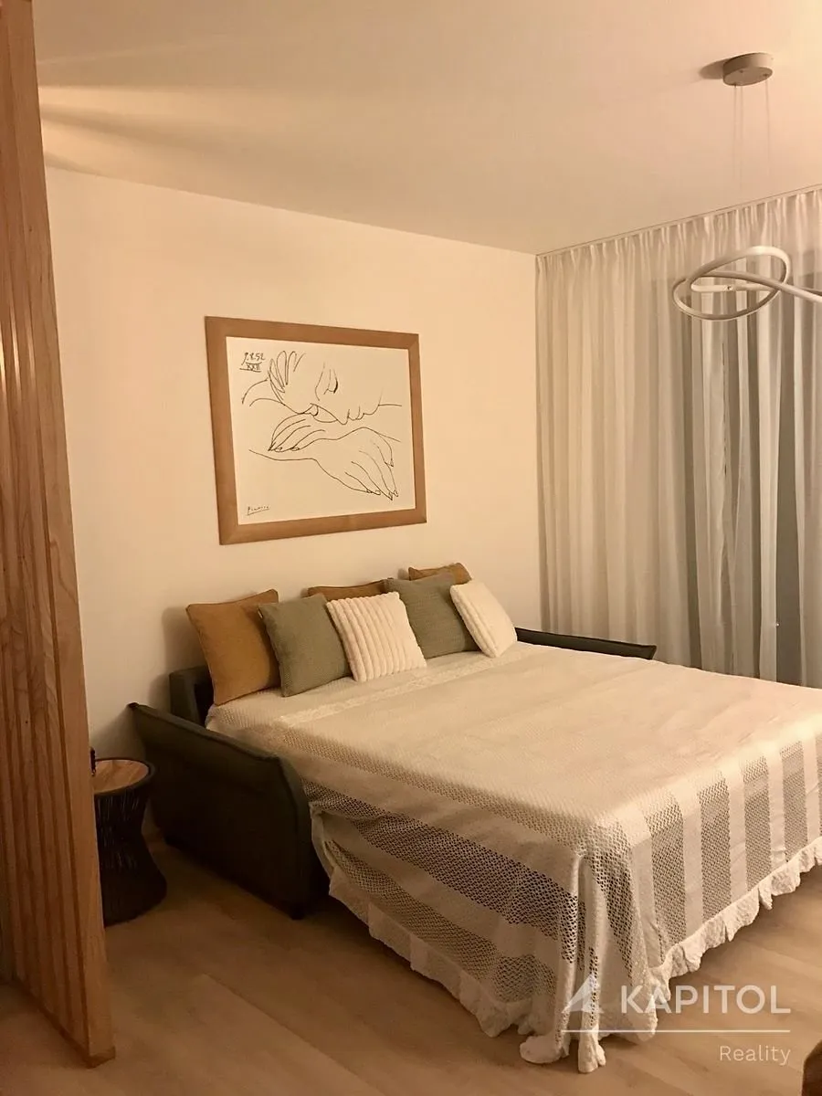 Byt je laděn v elegantním a čistém designu, vytvářející útulnou atmosféru, která působí harmonicky a nadčasově. Součástí bytu je moderní systém rekuperace, který zajišťuje stálý přísun čerstvého vzduchu a zároveň šetří energie. Byt řízen systémem inteligentní domácnosti zn. Loxone.