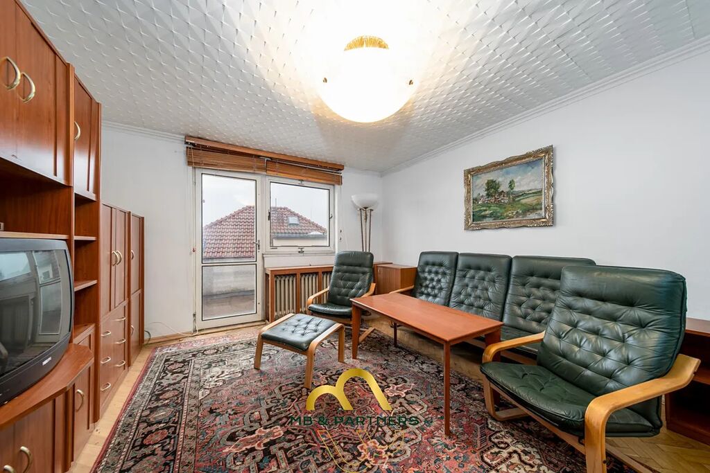 Prostor 69m2 nabízí 3 neprůchozí pokoje, (obývací pokoj, 2 malé ložnice), plus velký prostor 16m2 patřící k bytu ale se vstupem z chodby - vhodné například jako pracovna, šatna, úložný prostor..,