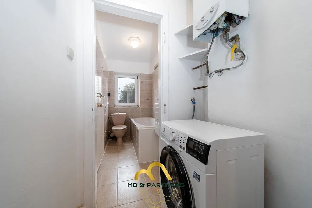 Na chodbě je velká hluboká skříň, koupelna s vanou a WC, kuchyň s oddělenou, ale průchozí jídelnou. Kuchyňská linka vybavena spotřebiči -el.sporák s troubou, myčkou a lednicí. Starší klimatizace.