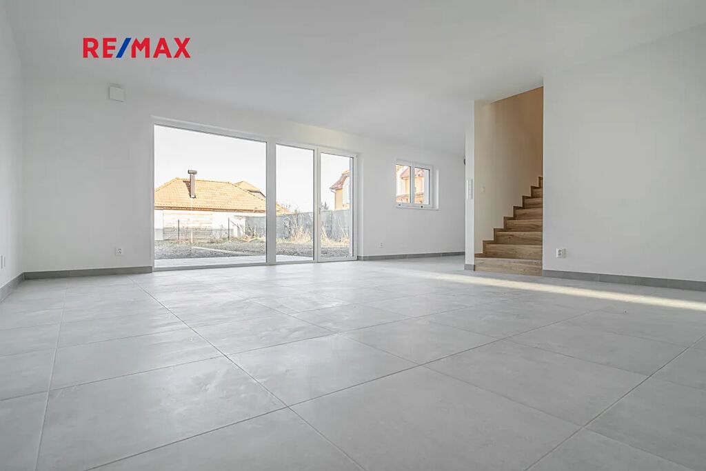 Nabízíme Vám bytovou jednotku 5+kk s garáží, terasou, zahradou a půdou v nízkoenergetické, zděné novostavbě řadového rodinného dvojdomu v Buštěhradu, ul. Za Humny 1254.