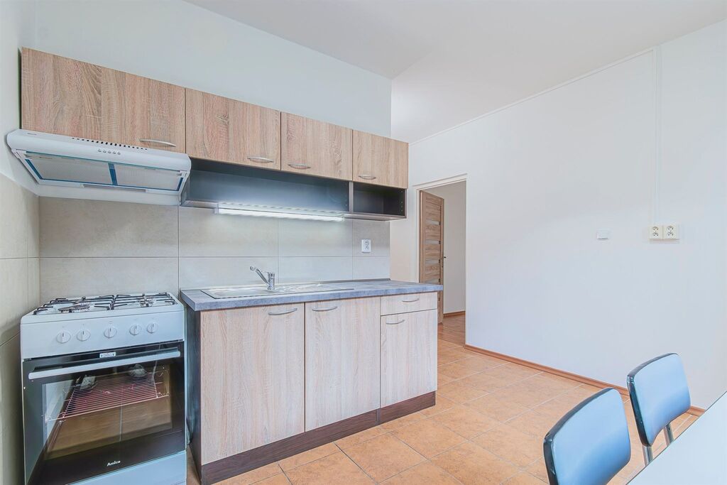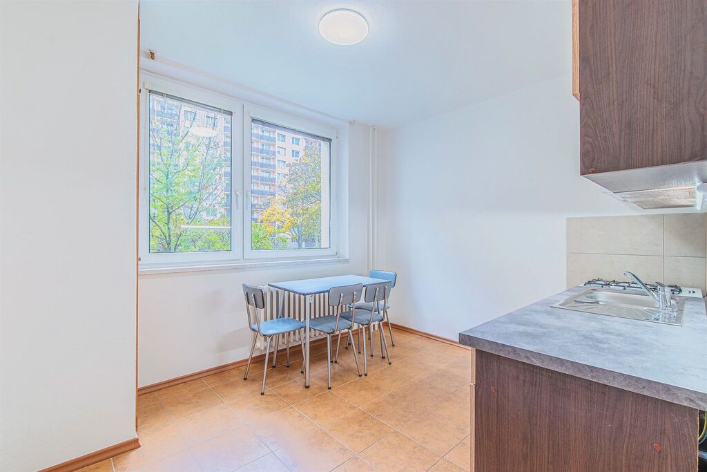 Dispozice bytu: vstup předsíň pokoj s výstupem na lodžii kuchyně s jídelním koutem koupelna se sprchovým koutem a WC. K bytu náleží sklepní kóje v suterénu budovy.