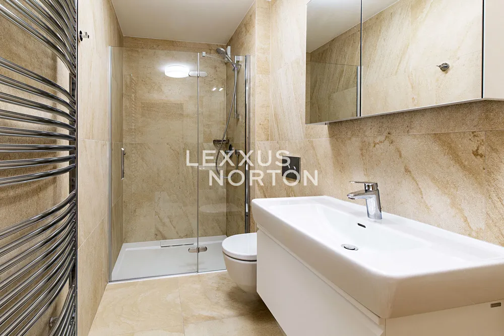 Tento částečně zařízený byt k pronájmu nabízí vstupní chodbu, prostorný obývací pokoj se vstupem na terasu a plně vybaveným kuchyňským koutem (sklokeramická deska, trouba, lednice, mrazák, myčka na nádobí) včetně jídelního prostoru, ložnici a koupelnu disponující sprchovým koutem a toaletou. V nemovitosti se nachází dostatek úložných prostor. Jednotka je součástí uzavřeného komplexu, ve kterém se nachází pouze 2 nemovitosti a disponuje samostatným odděleným vstupem, který nájemníkům zaručuje soukromí. V ceně nájemného je zahrnuto parkovací stání.