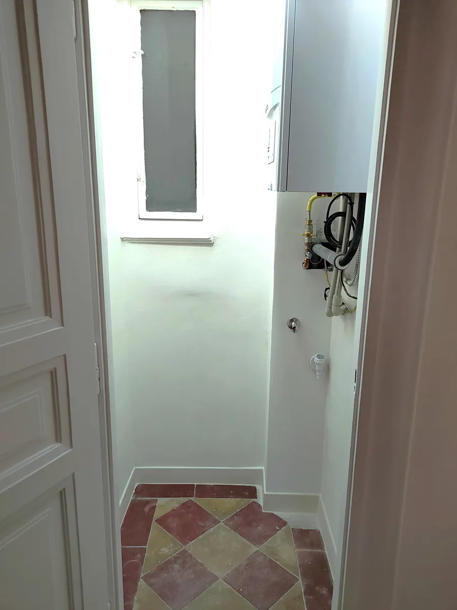 Vytápění bytu a ohřev vody je plynovým kotlem, který je umístěn v bytě v komoře. Byt je zařízen spotřebiči: myčka, el. trouba, 4 hořáková plynová deska, digestoř.