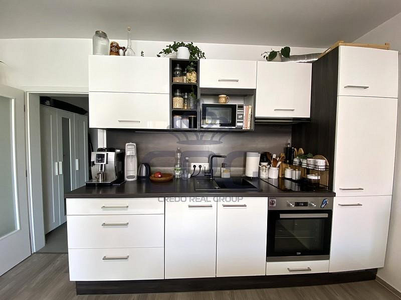 Obývací místnost s kuchyňským koutem je o velikosti cca 22,05 m². Kuchyně je vybavena dvou plotýnkovou indukční deskou, troubou, lednicí s mrazákem. Hlavní dominantou bytu je terasa o výměře cca 6,24 m².