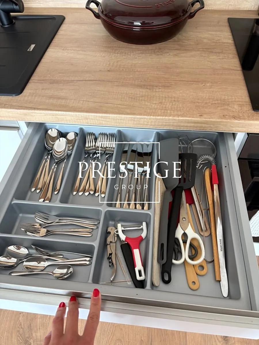 Byt je kompletně zařízený kvalitním nábytkem a kuchyňskou linkou se spotřebiči – lednice, varná deska, trouba, kávovar, konvice, příbory, talíře. K dispozici je také pračka a sušička. Koupelna je vybavena sprchovou vanou a toaletou. V bytě je dostatek úložných prostor díky vestavěné skříni v ložnici, chodbě a samostatné technické místnosti.