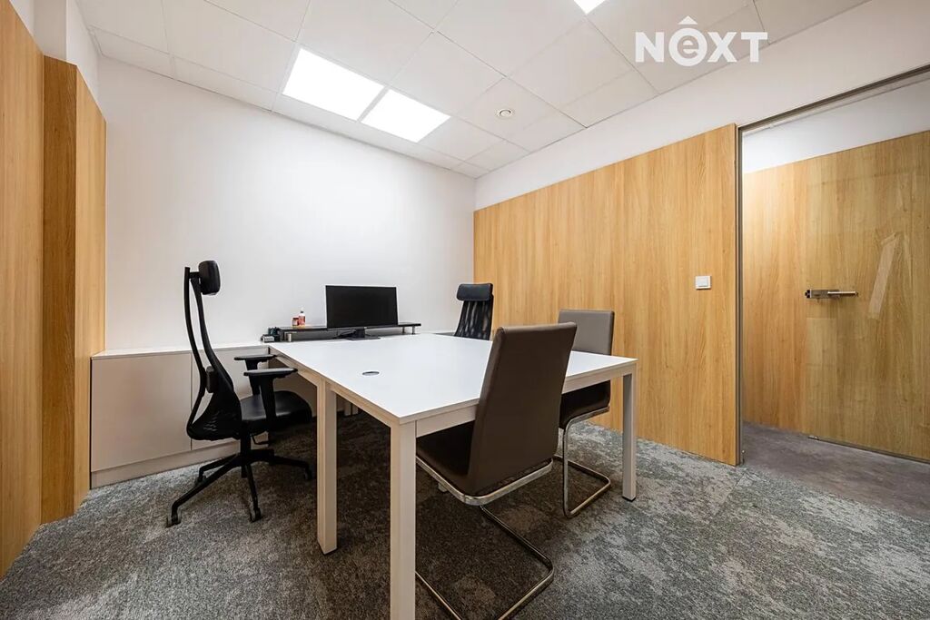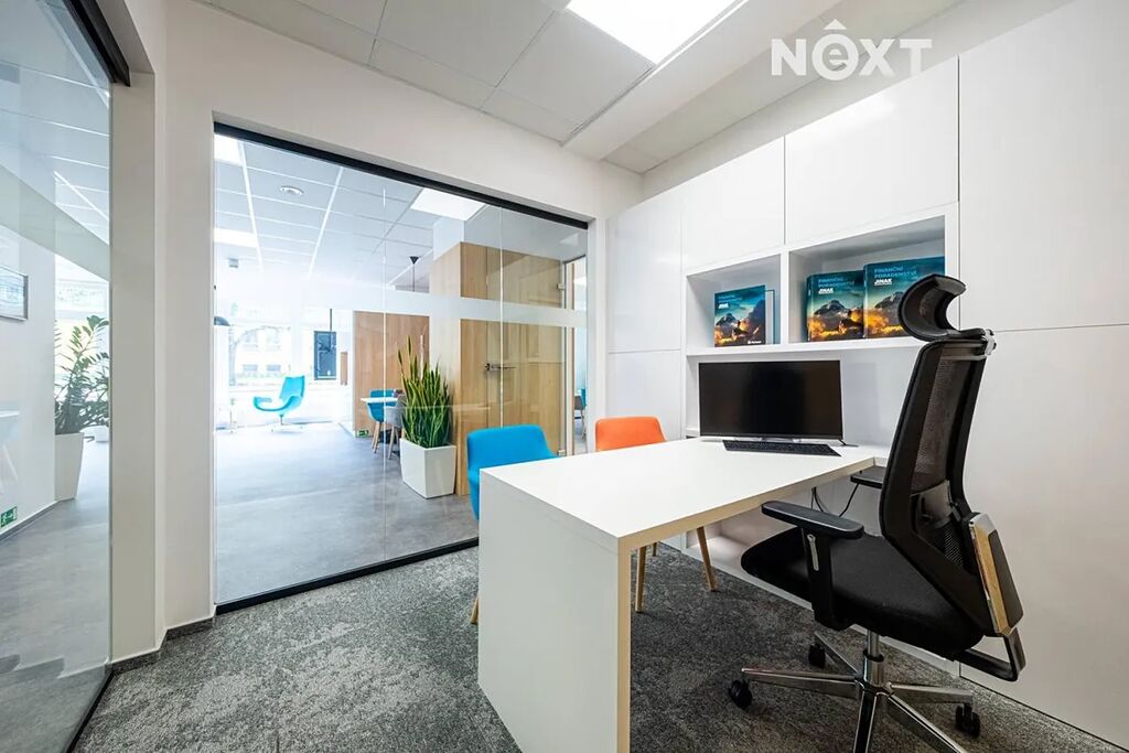 Dispozice - Vstup do komerčních prostor skrze recepci, na který navazují čtyři samostatné kanceláře a zasedací místnost se samostatným vstupem. V zadní části komerčních prostor je zázemí pro kanceláře - toalety, dětský koutek, kuchyňka s jídelnou, skladovací prostory - technická místnost, Součástí pronájmu 3x garážové stání v budově.