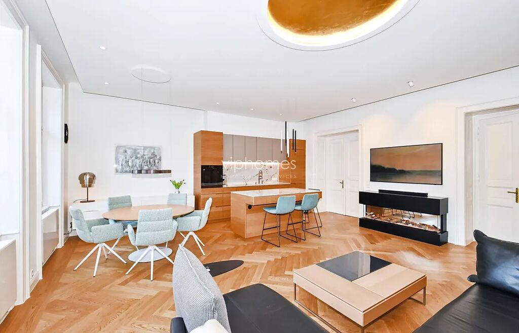Nabízíme k pronájmu elegantní designový byt s dispozicí 3+kk o celkové ploše 108 m², situovaný ve 3. patře secesní budovy v srdci Starého Města. Spojení tradiční, historické architektury s moderním stylem bydlení na jedné z nejžádanějších adres v Praze, v pěším dosahu Staroměstského a Václavského náměstí. Výhodná lokalita pouhých pár minut chůze náměstí Republiky se stanicí metra a nákupním centrem Palladium s pestrou nabídkou restaurací, kaváren, butiků, obchodů.
