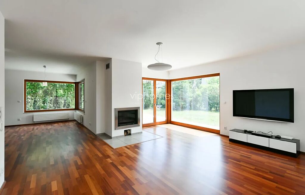 Plně klimatizovaná vila vyniká kvalitním provedením a nabízí: 5 ložnic, 4 koupelny, 3 terasy. Přízemí: prostorný obývací pokoj s krbem a velkými francouzskými okny, jimiž se vstupuje na terasu a zahradu (567 m2), dále moderní, plně vybavena kuchyň, šatna, koupelna ze sprchovým koutem, a samostatná toaleta. Integrovaná garáž. V prvním patře je situována hlavní ložnice s vlastní koupelnou, šatnou a velkou terasou, další tři ložnice, společná plně vybavena koupelna. Další patro nabízí velkou ložnici s koupelnou a jihovýchodně orientovanou střešní terasou (79 m2). V suterénu (140 m2) naleznete 3 místnosti, (fitness, herna apod.), dále technickou místnost, prádelnu, dvě komory.