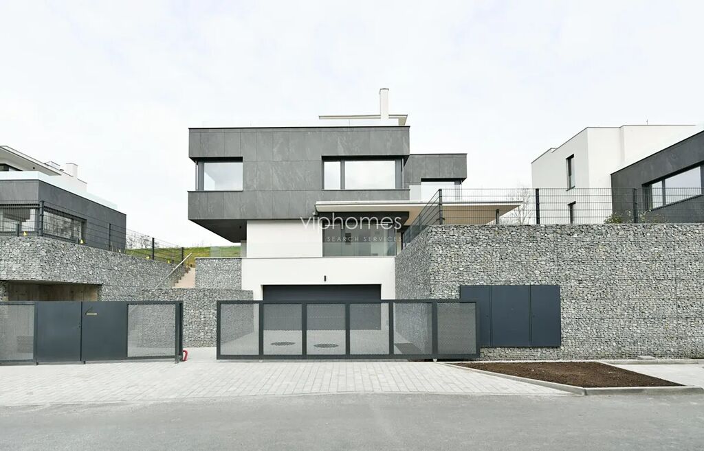 Kvalitní dům v nízkoenergetickém standardu nabízí 6 ložnic a 4 koupelny. V přízemí domu se nachází vstupní hala, prostorný světlý obývací pokoj, orientovaný na jih, (moderní krb), vstup na terasu, místnost, kterou lze využít jako pracovnu / pokoj pro hosty, dále je zde koupelna ze sprchovým koutem, samostatná toaleta. Moderní kuchyňská linka vybavena všemi potřebnými spotřebiči: sporák s keramickou indukční deskou, velká lednice, myčka, el. trouba, mikrovlnka. První patro tvoří čtyři ložnice, (z nichž jedna s přístupem na balkon), koupelna s vanou, bidetem a toaletou, další koupelna ze sprchovým koutem, toaletou a bidetem. Druhé patro nabízí malou galerii a ložnici s krásnými výhledy a ze vstupem na terasu; koupelna se sprchovým koutem a toaletou. V suterénu ještě dvě místnosti, technická místnost s tepelným čerpadlem a přípravou na pračku s sušičku. Dále je zde sauna se sprchou. Garáž pro 2 vozy.