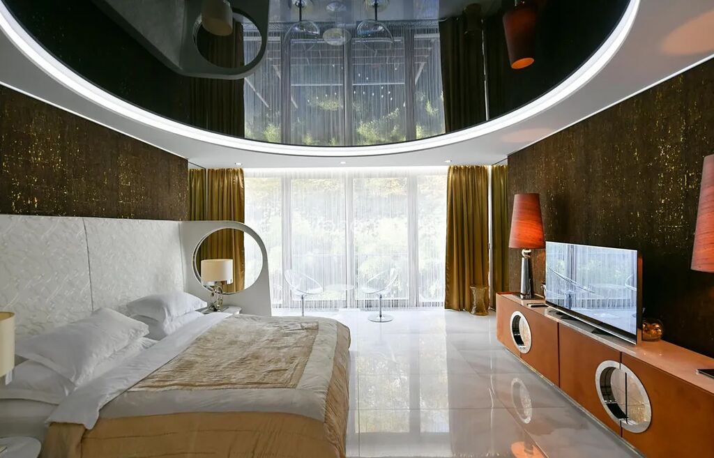 Dispozice: členěný interiér bytu nabízí světlý obývací pokoj s ložnicovou částí s příjemnými výhledy do zeleně. K dalšímu zařízení sedací souprava, komoda, kávovar, konvice, televizor a trezor. V předsíni je vestavná zrcadlová skříň s velkým úložným prostorem, lednicí, žehličkou s žehlícím prknem. V pohádkové koupelně je nainstalovaná perličková vana, WC, bidet a umyvadlo se zrcadlem. Výměra – celkem má byt 53 m2. Celý byt je klimatizován.