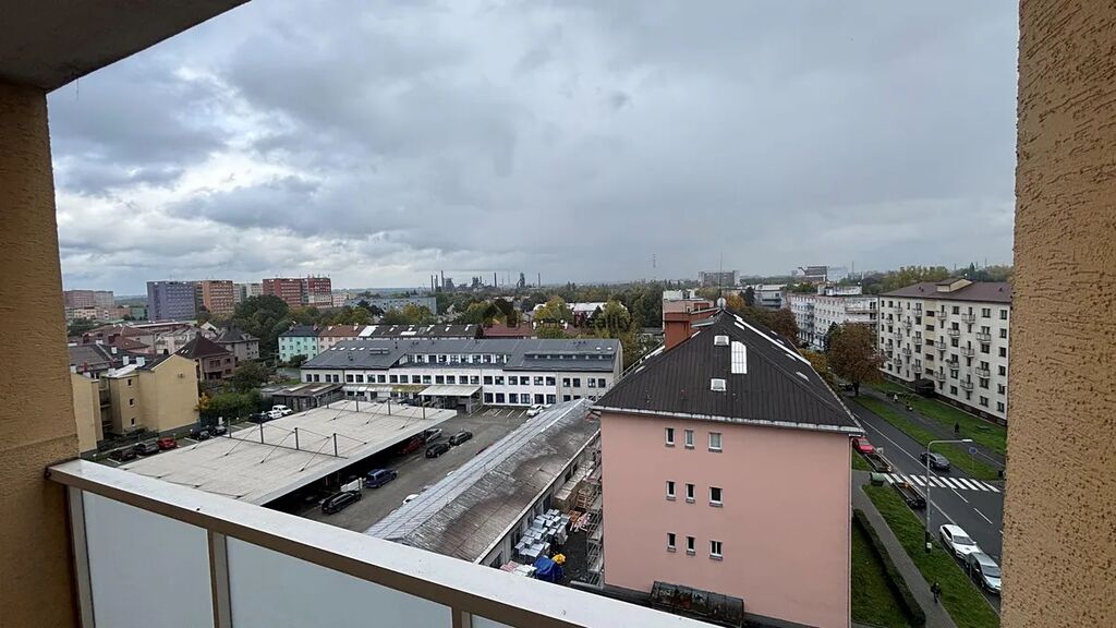 Byt nabízí výhled směrem na průmyslovou oblast Vítkovic, což prostoru dodává osobitý industriální charakter.