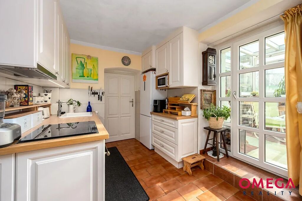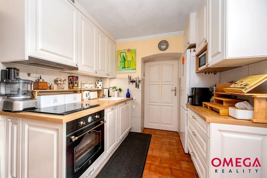 Kuchyňská linka je přibližně 3 roky stará a je vybavena sklokeramickou varnou deskou, myčkou a horkovzdušnou troubou.