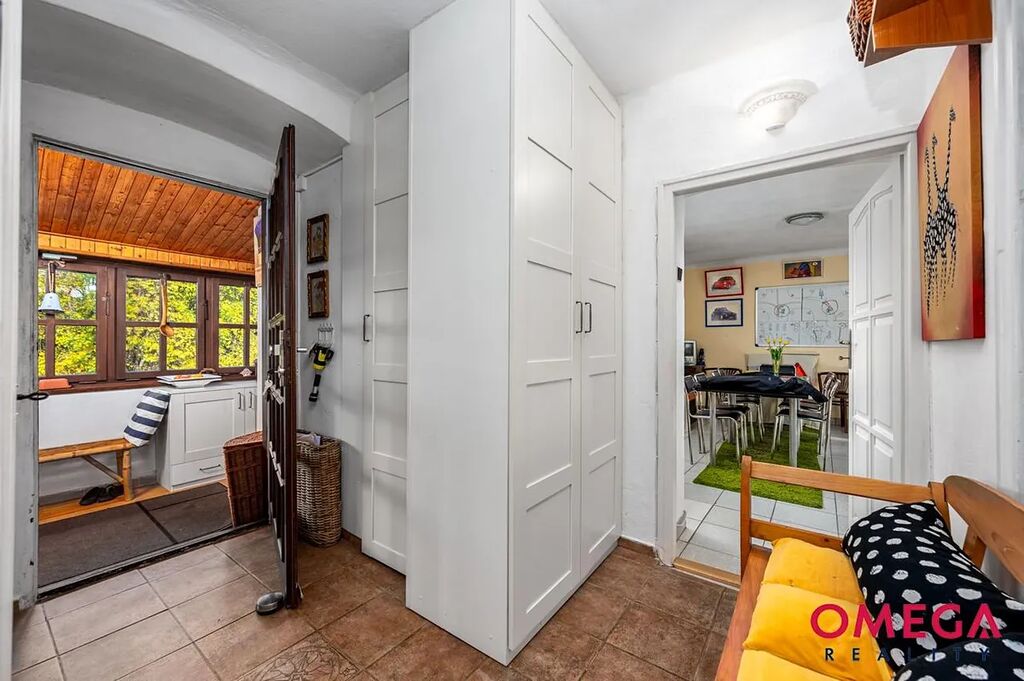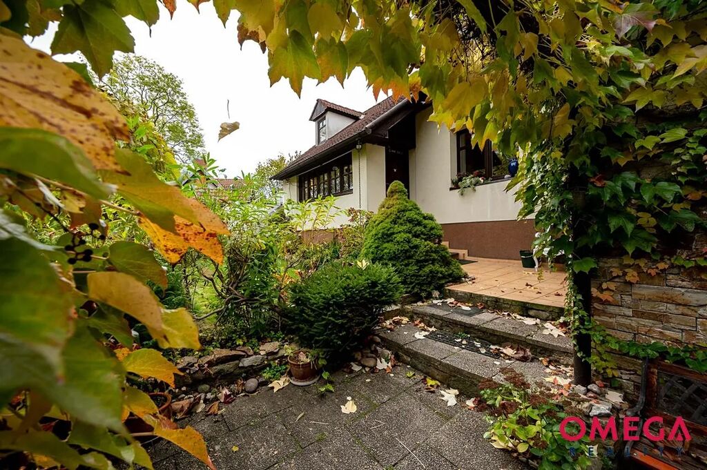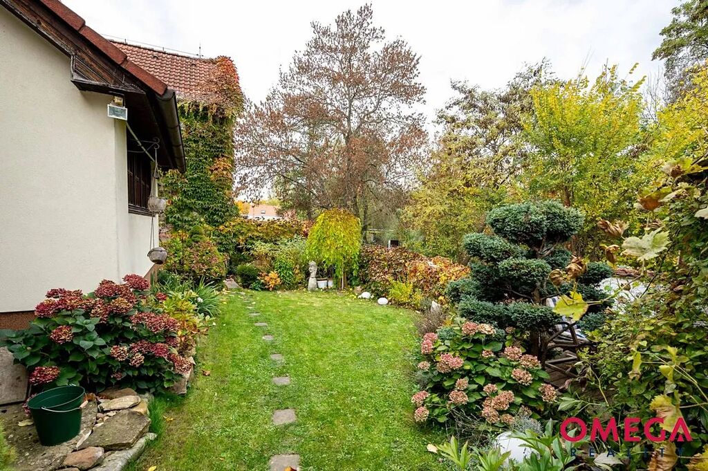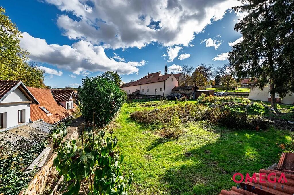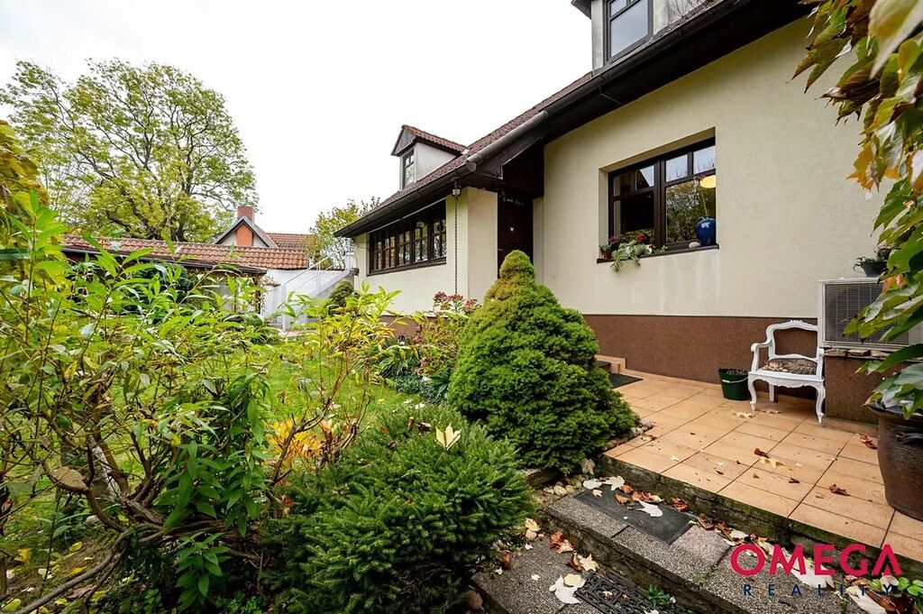 Před domem se nachází pergola, garáž u vstupu a sklep přístupný zvenčí (umístěný pod schody u pergoly). Ze sklepa pravděpodobně vede chodba směrem k farnosti, což dodává domu zajímavý historický rozměr.