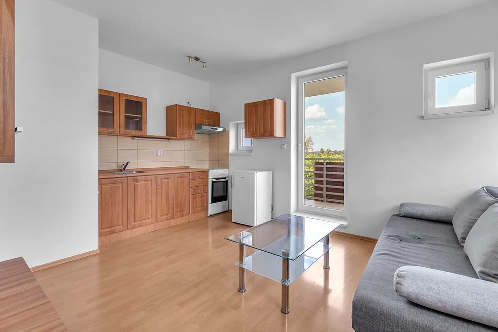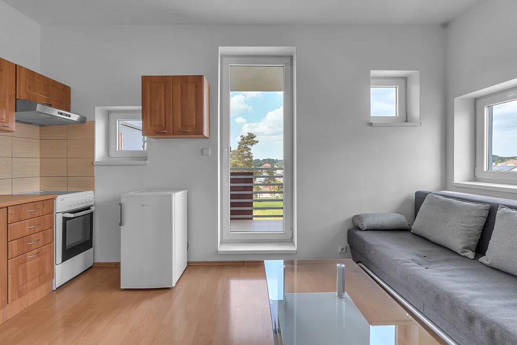 Pronájem moderního bytu 1+kk s balkonem a částečným vybavením v atraktivní lokalitě
