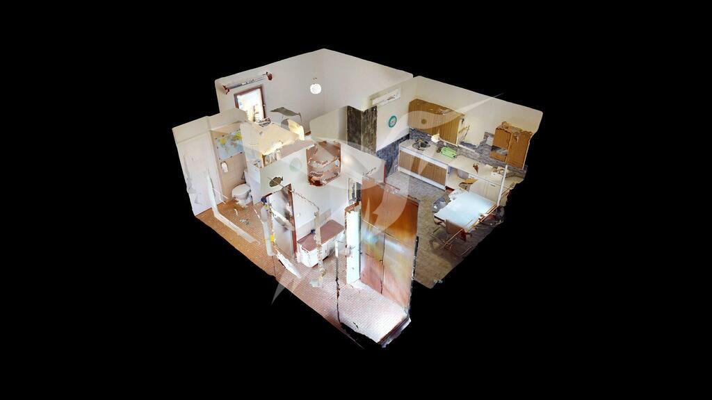 Dispozice zahrnuje vstupní předsíň, koupelnu s toaletou, obytný prostor s kuchyňskou linkou a samostatný pokoj, dále sklepní prostory.