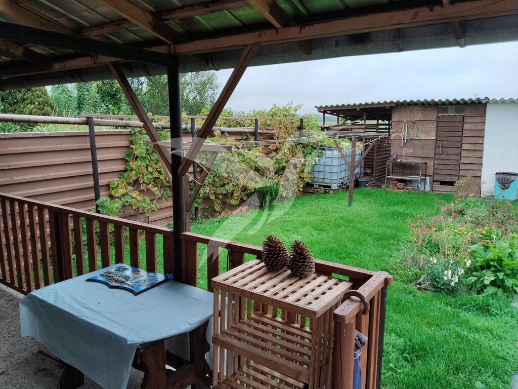 Na pozemku se nachází několik ovocných, plodících stromů, nádrže na dešťovou vodu a také zahradní domek sdílený s kůlnou na dřevo, který je k užívání nájemníka.
